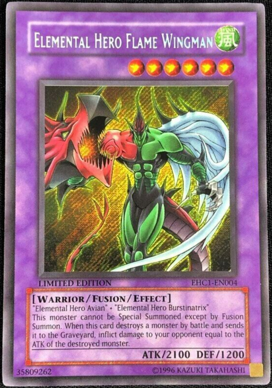 Elemental Hero Flame Wingman (EHC1-EN004) - Secret Rare - Yugioh *FREE SHIPPING This rare and valuable artifact, Elemental Hero Flame Wingman, is a must-have for any serious Yu-Gi-Oh! player or collec...