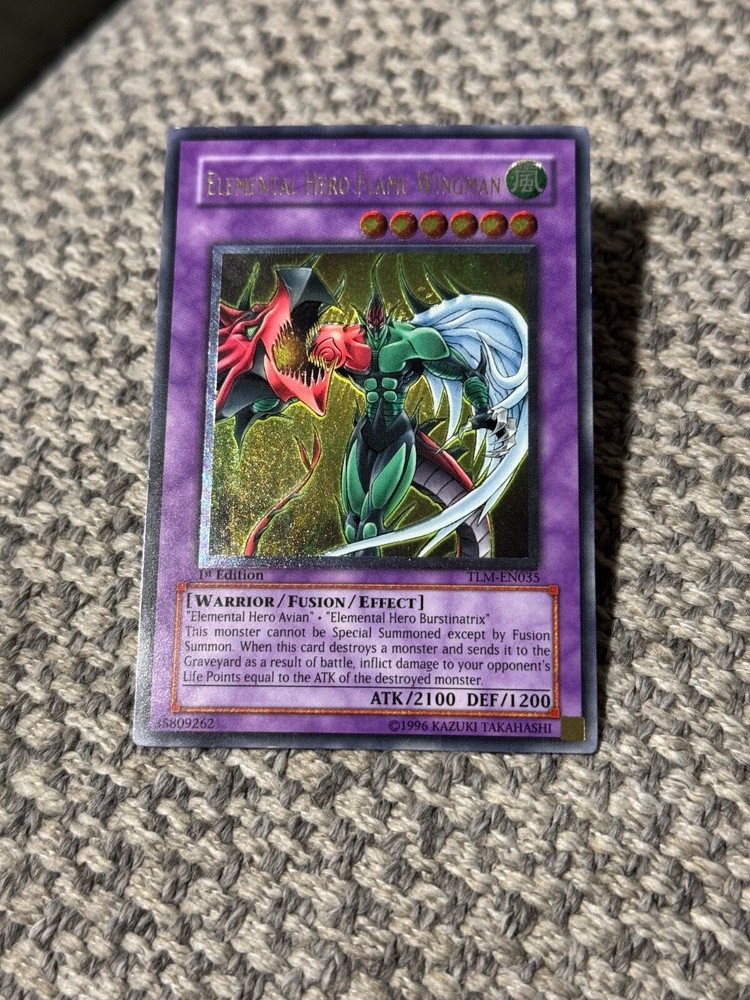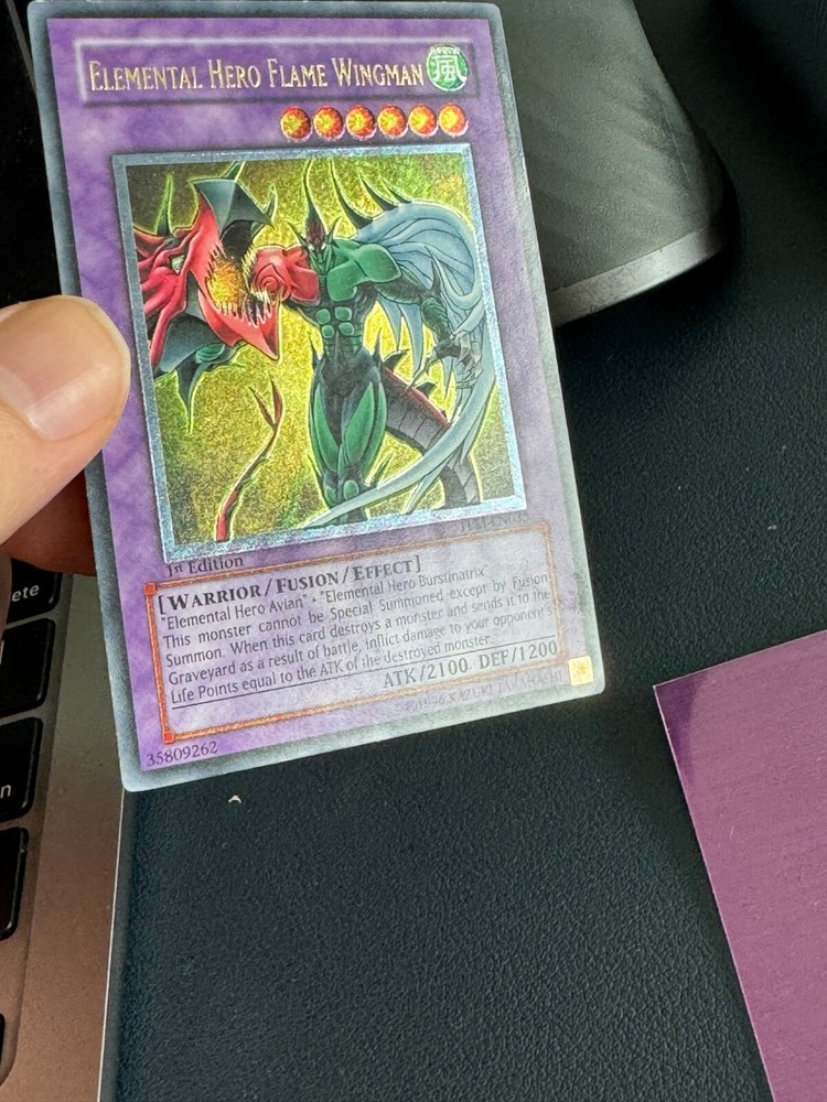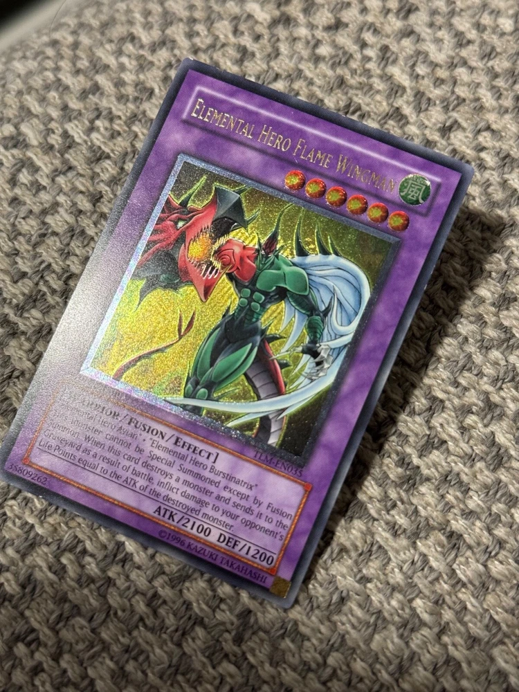 This card is a must-have for any Yu-Gi-Oh! collector! The Ultimate Rare gold stamp makes Flame Wingman pop, and even in LP/MP condition, it looks stunning. The 1st Edition Lost Millennium print adds serious nostalgia value. A fantastic addition to any Hero deck or display—totally worth it!