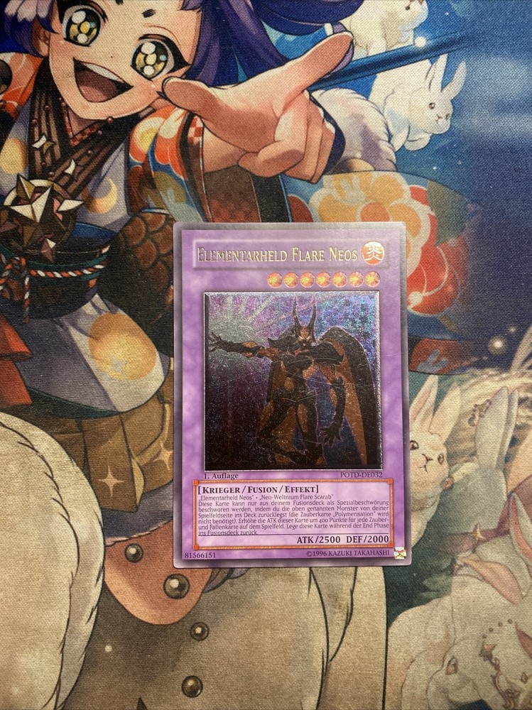 Elemental Hero Flare Neos - POTD-DE032 Ultimate Rare *GERMAN* 1st ed LP Yugioh Card, some scratches...
