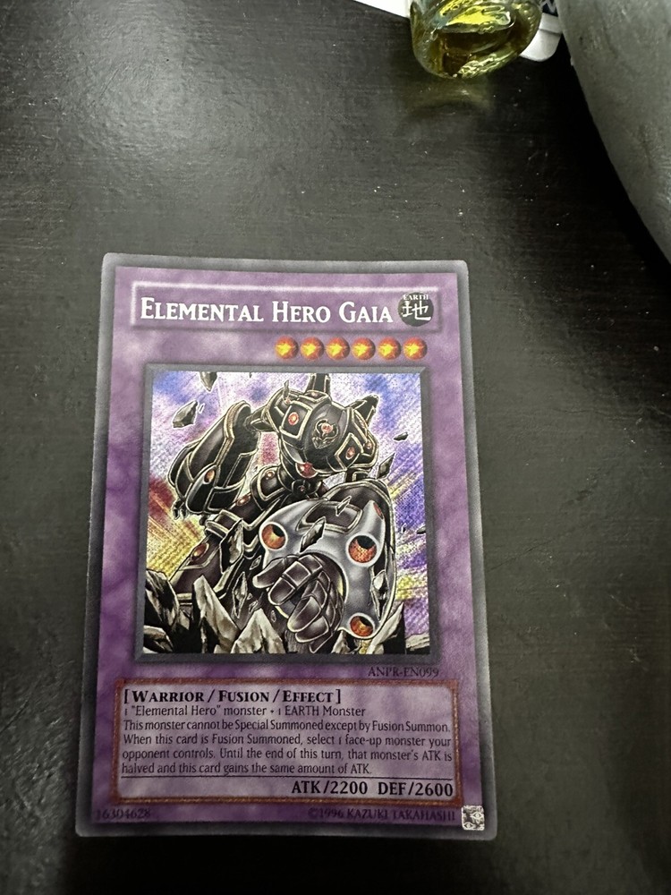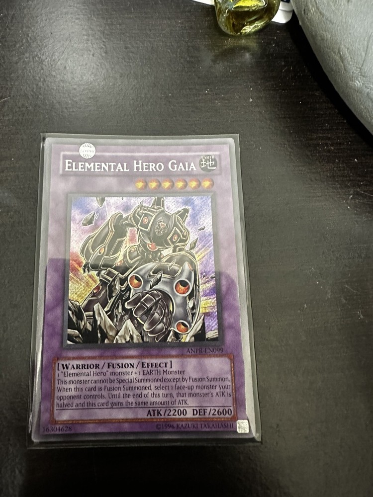 Secret Rare Unlimited Edition Elemental Hero Gaia for sale. The card has never been played and went straight into a sleeve. It is in mint condition. Please message me if you have any questions. Thank you