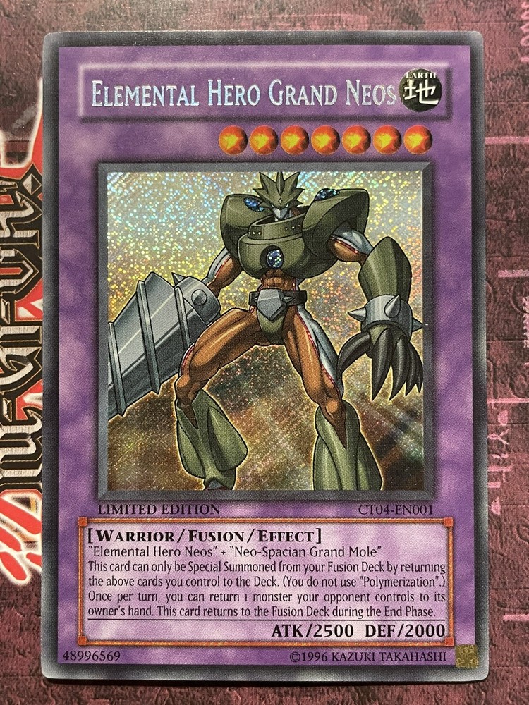 1x Elemental Hero Grand Neos (CT04-EN001) Secret Rare Limited Edition. Condition is near mint/very lightly played. Shipped with USPS. Fast shipping with tracking and will be sent in a top loader. Thank you!