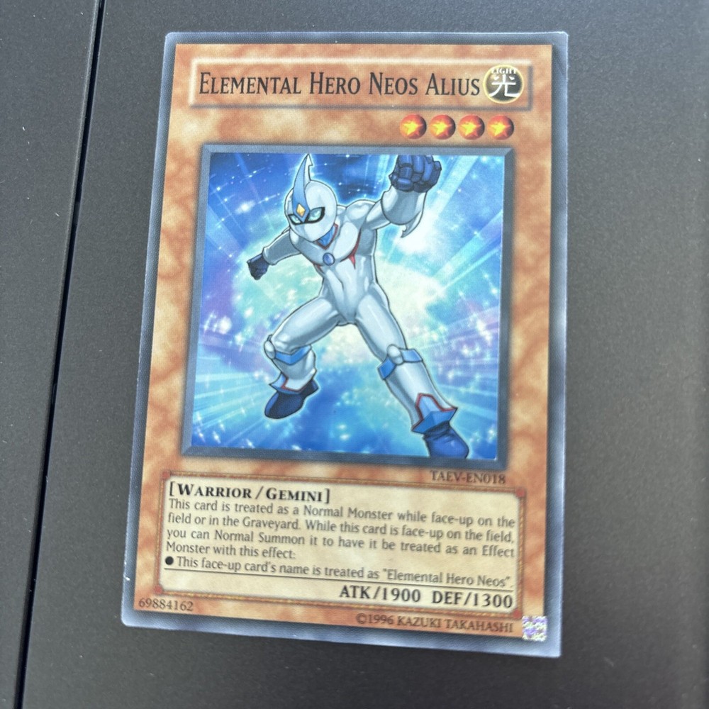 This is an opportunity to purchase the highly sought-after Elemental Hero Neos Alius card from the Yu-Gi-Oh! TCG game. It is a Super Rare 1st edition card with a light color, manufactured by Konami in the United States and written in English. The card is in great shape with a Condition Type of 4000, suitable for players 6 years and older. Get your hands on this collectible card and expand your gaming collection. Whether you are an avid collector or player, this card is sure to enhance your experience. Don't miss out on this chance to add the Elemental Hero Neos Alius to your deck.