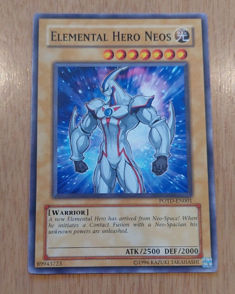 Hello, thank you so much for stopping by! Today, I am selling a Elemental Hero Neos POTD-EN001 Yu-Gi-Oh card. The card is in good shape, but is lightly Played, seeing minimal wear and tear with slightly worn edges, corners, some small surface scratches and buffs. See photos above for details. If you have any questions, please feel free to ask. I hope it was what you were looking for :)