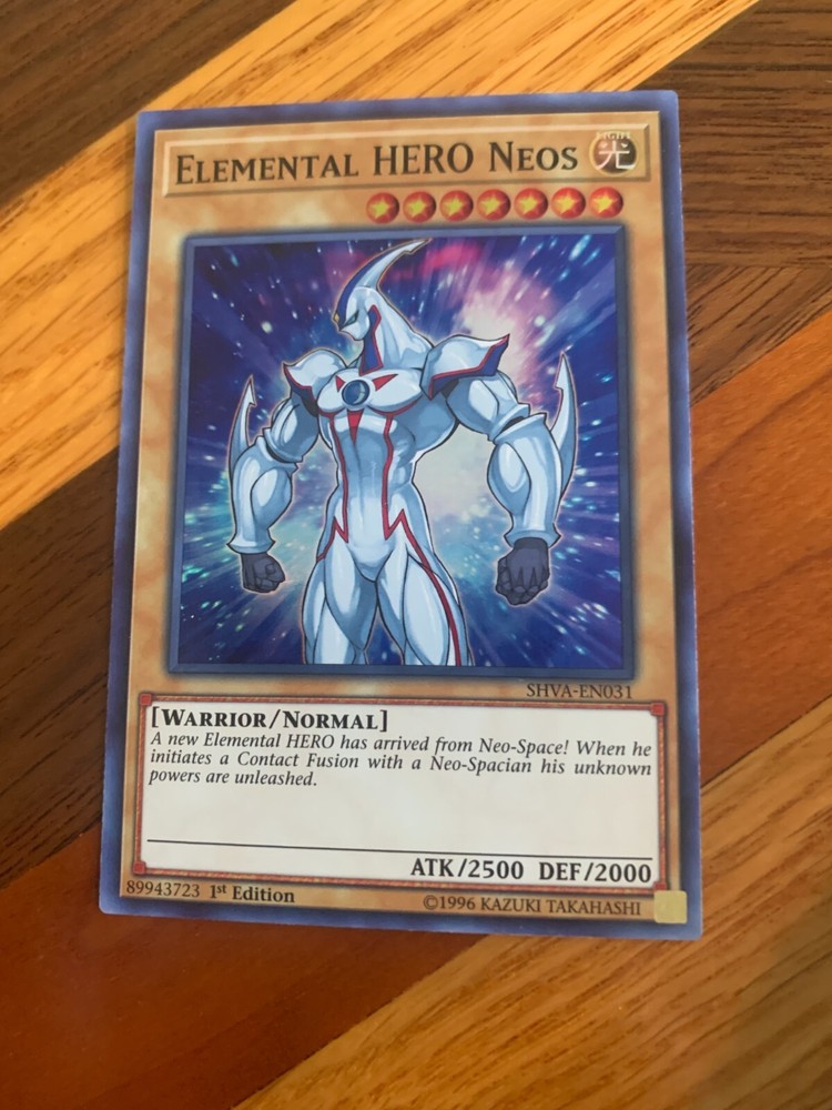 Hello! You are buying one Elemental Hero Neos SHVA-EN031 1st Edition Super Rare in near-mint condition. As a thank you for buying from me, I will throw in two free Yugioh commons! Thank you so much for looking, have a great day! If there is ever an issue, please let me know so I can do whatever I can to resolve it! Please check out my other items! I have many more single cards!