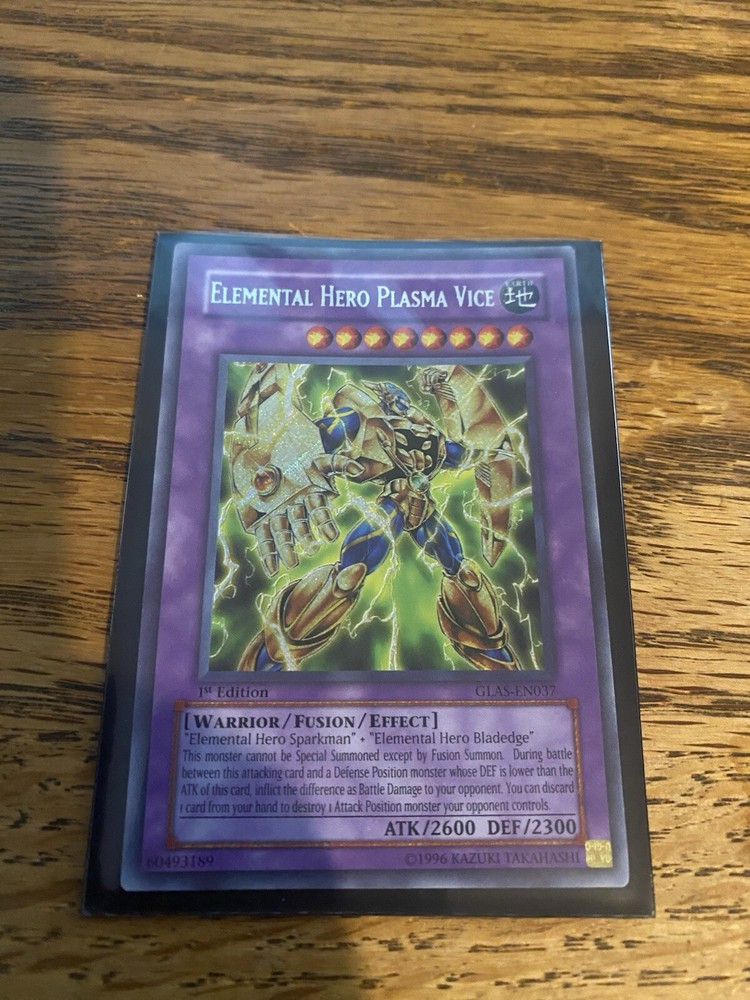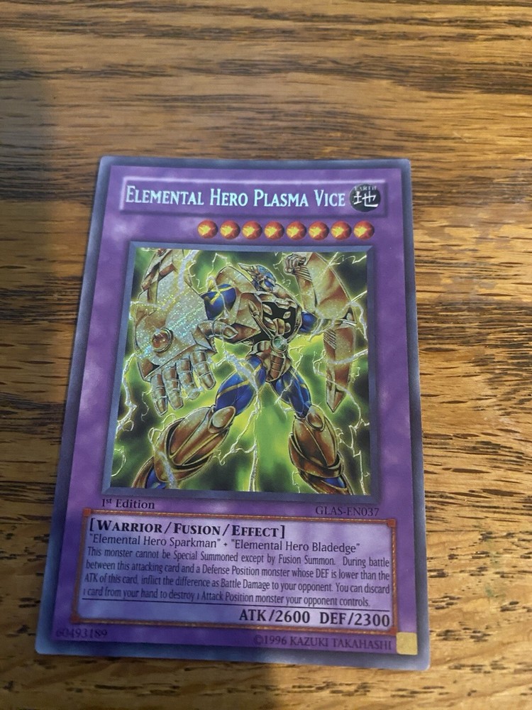 This rare and highly sought-after card is perfect for any collector or player of the Yu-Gi-Oh! TCG. With its stunning Secret Rare rarity and 1st Edition status, the Elemental Hero Plasma Vice card is a must-have for any serious player. Featuring a powerful Warrior creature with 2600 attack and 2300 defense, this card is sure to impress. The card is in English and manufactured by Konami, making it a high-quality addition to any collection. Don't miss your chance to own this incredible card from the Gladiator's Assault set. Please feel free to ask questions or for additional pictures.