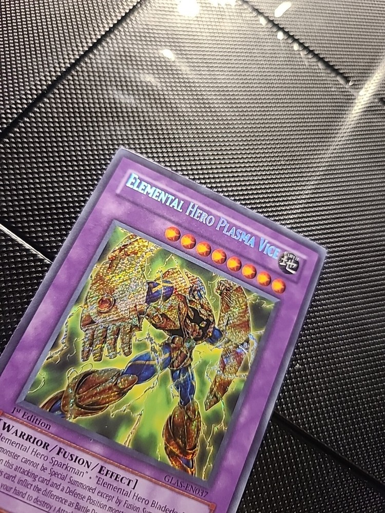 This is a rare and highly sought-after Elemental Hero Plasma Vice GLAS-EN037 card, featuring a Secret Rare rarity and 1st Edition Text Misprint. It is perfect for collectors and fans of the TCG game. The card name is Elemental Hero, and it belongs to the CCG Individual Cards category. It is an excellent addition to any collection and will be a valuable asset for years to come.