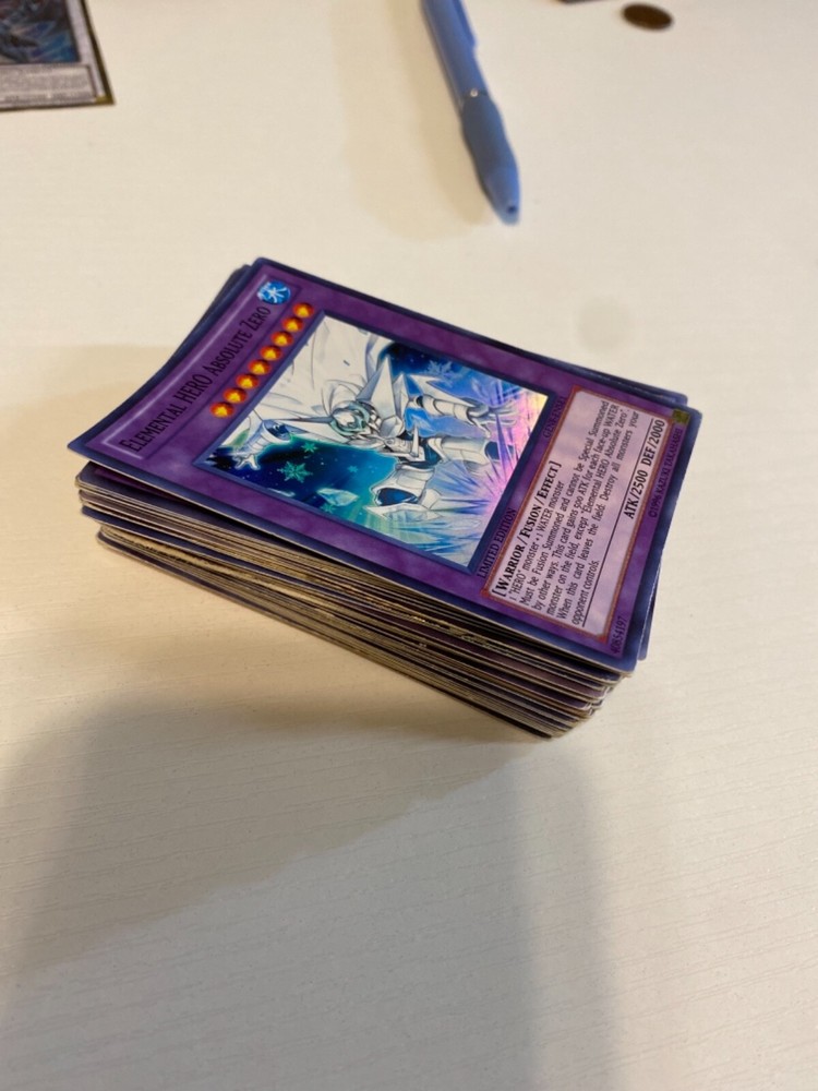 All elemental hero based cards. Conditions are varying. Only a few in there that are in bad condition....