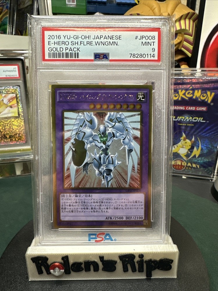 The Elemental Hero Shining Flare Wingman GP16-JP008 PSA 9 is a highly collectible and sought-after Yu-Gi-Oh! Trading Card Game card manufactured by Konami in Japan. This ultra rare card features a light attribute, holo finish, and has been professionally graded by the Professional Sports Authenticator (PSA) with a grade of 9. With its limited availability and pristine condition, this card is a valuable addition to any Yu-Gi-Oh! card collection.