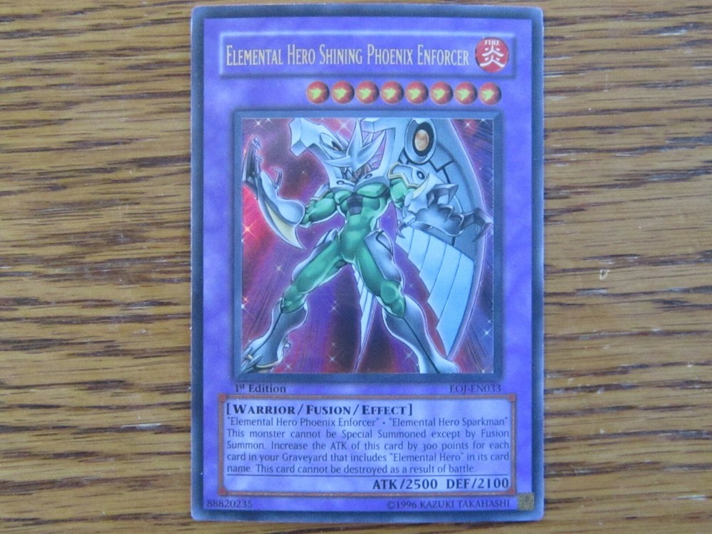 This is for the Ultra Rare used card Elemental Hero Shining Phoenix Enforcer. It is a 1st Edition card and is in nice shape. Thanks