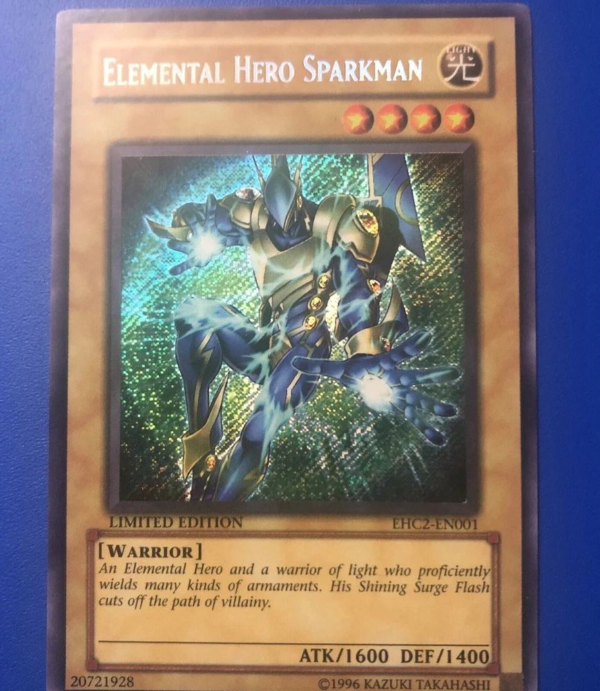 Elemental Hero Sparkman EHC2-EN001 Limited Edition Secret Rare. **Please review all pictures and make sure your satisfied as there IS NO RETURNS OR REFUNDS!!!! Ask questions before buying if you have any. All items shipped are recorded for both parties safety Any scamming or fraud will be reported I can’t hold any items. Don't buy if you don't intend to make good on your transaction. Once an order is placed, I have to ship to that address. So please confirm you have selected the correct address before placing your order. Payment is due within 1 Day. Item will be cancelled if payment is not received All Sales Final Thank you