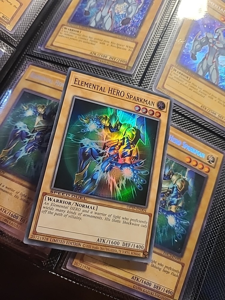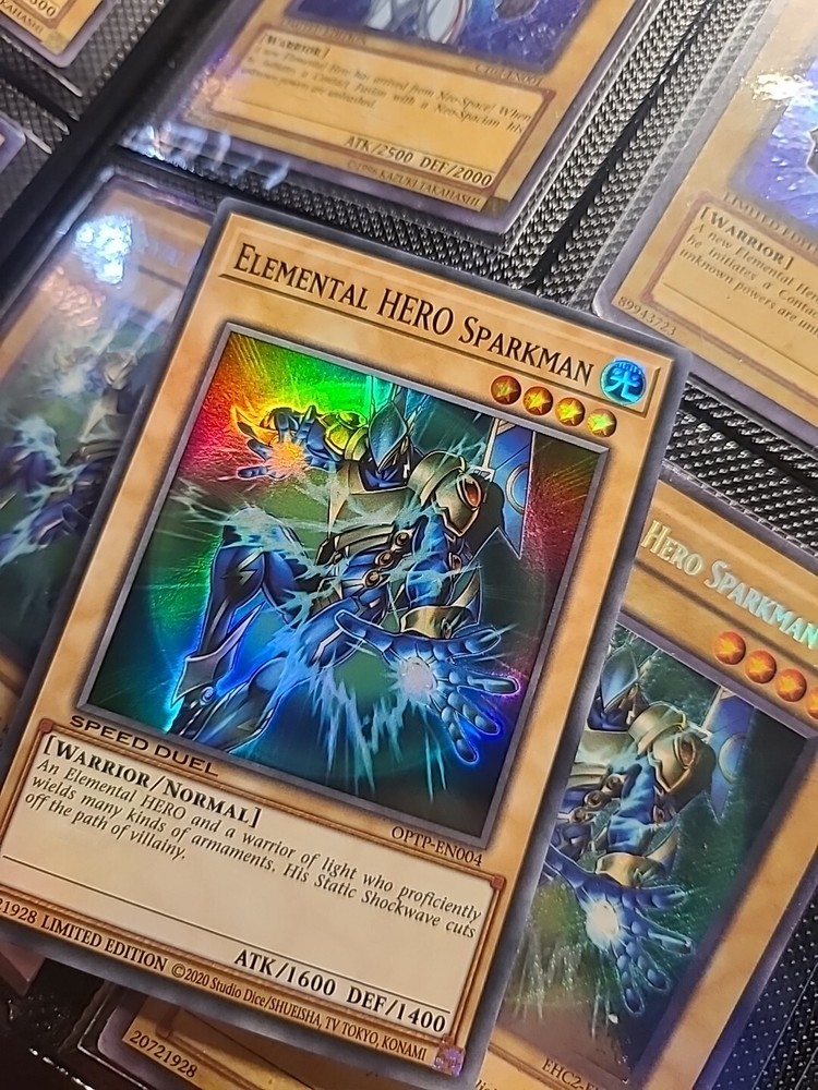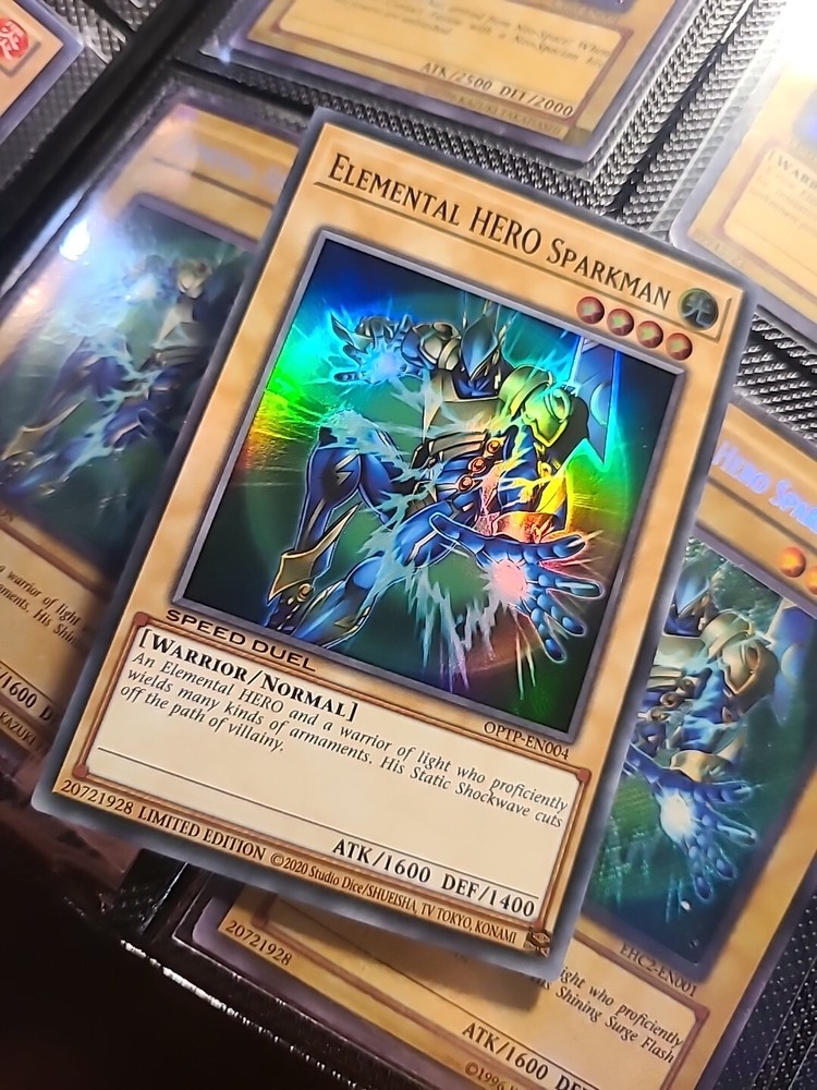 Elemental Hero Sparkman - Super Rare - OPTP-EN004 Limited Edition . Condition is Ungraded. Shipped with USPS Ground Advantage.