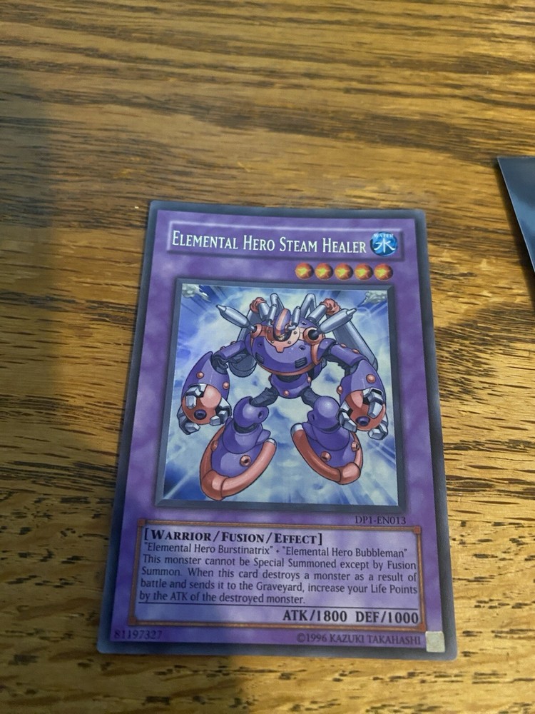This Elemental Hero Steam Healer card is a must-have for any Yu-Gi-Oh! TCG collector. With its ultra-rare status and unlimited edition, it's a valuable addition to any card collection. The card features Jaden Yuki, a warrior creature type, with 1200 defense and 2100 attack power. The card is in English language and has the card number DP1-EN013. It's an effect and fusion card type, and is manufactured by Konami. This card belongs to the Toys & Hobbies category and the Collectible Card Games subcategory, making it a sought-after item for fans of the game. Feel free to ask questions or for additional pictures.