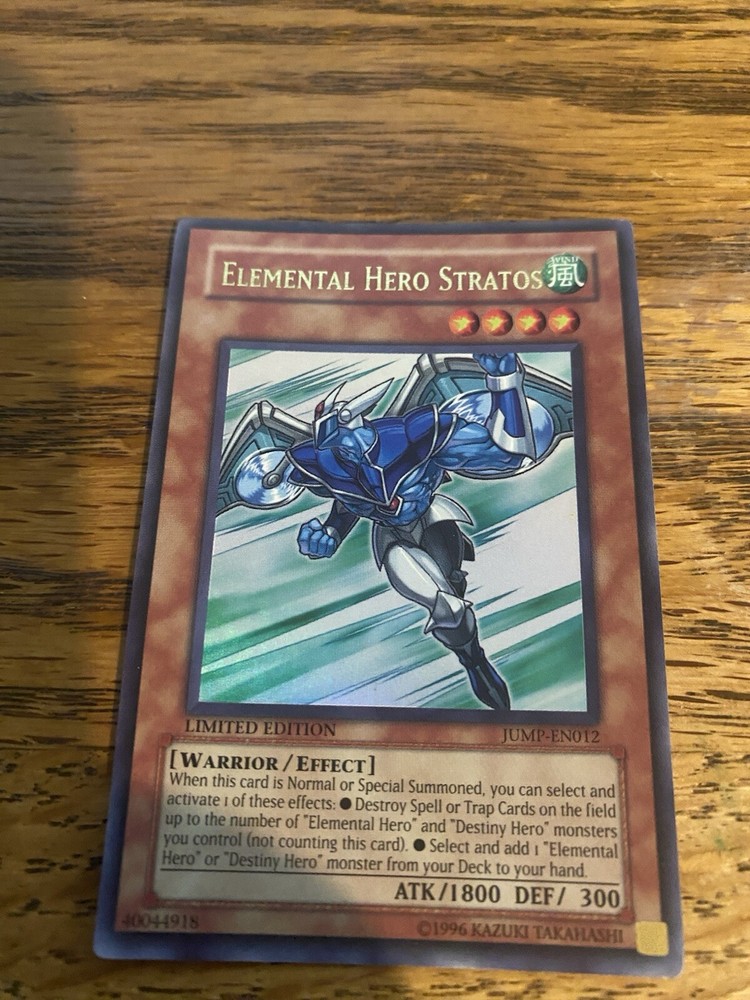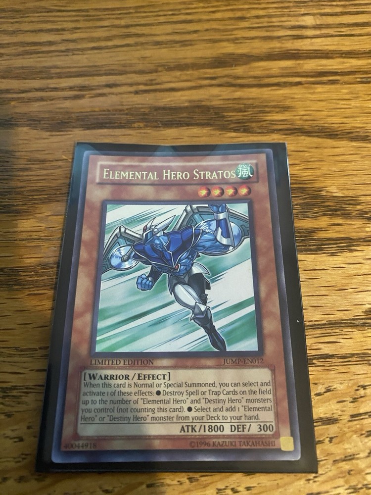 This limited edition card is a must-have for any Yu-Gi-Oh! TCG collector. The Elemental Hero Stratos JUMP-EN012 card is an ultra rare card with 1800 attack and 300 defense/toughness. It belongs to the Warrior creature/monster type and is colored Wind. The card is in English language and manufactured by Konami. This card is part of the Shonen Jump Magazine Promos set and features a jumping stratosphere with a unique effect. It is a great addition to any collection and a perfect way to impress your fellow collectors. Don't miss out on this opportunity to own a piece of Yu-Gi-Oh! history. Please feel free to ask questions or for additional pictures.
