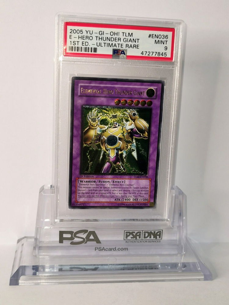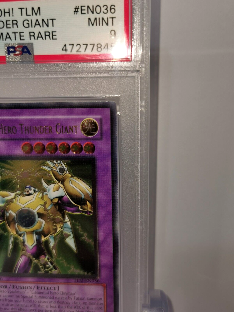 Home New Arrivals Feedback Contact Elemental Hero Thunder Giant tlm-en036 - PSA 9 Item Description Good day Sir/Madam! The card/slab you are viewing now is PSA 9 Message me on Instagram (@TheCollector1462) for better deals on all cards/slabs ^^ Stand not included. All conditions stated in my listings are my opinion of the card, which may differ from somebody else. When I say 'Mint condition', I believe it is grade worthy, please message me first if that is what you are after and I will double check any card for you so nobody is disappointed :) Please have a look at my other swag! XD The first picture will be the 1st card (set of cards) you will receive!!! A ny extra pictures are to show you the other cards for sale (Picture order is consistent with the card(s) I will be posting to you). So if I have quantity of 3 for example, and 1 has sold, you will receive the card(s) in the 2nd photo(s) :) CHECK OUT MY GRADING SYSTEM BELOW ^_^ MINT - No damage......MINTY FRESH! (message me if it needs to be grade worthy) NEAR MINT - Close to Mint, only very slight wear or any very small imperfection(s) VERY GOOD - Visible wear on the card but no major wear GOOD - Obvious wear but nothing unplayable USED - Still playable but in pretty bad shape, bad condition Always message me if unsure of condition :P Please have a look at my other swag! :) Message me if i can help with anything at all! ***I WILL BUY YOUR YU-GI-OH CARDS !!!*** See Other Items Shipping Always very well packaged!! I always post the same day or next working day depending on how late in the day the order is placed :) Message me if you have any specific requirements for postage! I am not responsible for customs charges for oversees buyers Payment I accept all types of payments (Paypal, Credit/debit card, Apple/Samsung pay etc...) Returns I will accept any returns for items not as described :) I will also accept returns on items where you have simply changed your mind. However I would have to request that you pay any postage and fees :) Thanks for looking Thank You for your purchase Copyright All Rights Reserved - Template Created by ZTproject