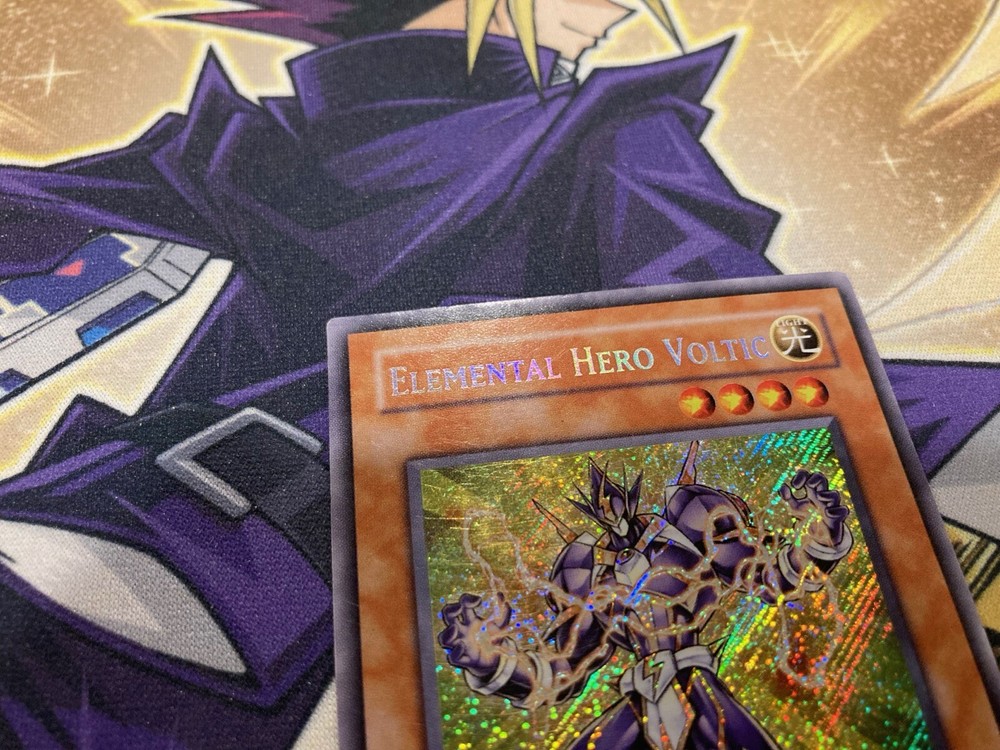This Secret Rare Elemental Hero Voltic looks amazing! The card is in solid MP condition with great foil shine. Packed safely in a sleeve and top loader for protection. Seller is super responsive and offers combined shipping—great for collectors. Fast shipping to US/Canada, and they really care about customer satisfaction. Highly recommend for any Yugioh fan!