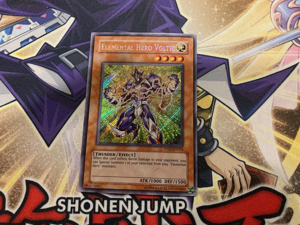 Elemental Hero Voltic PP02-EN014 Secret Rare MP Yugioh Card Elemental Hero Voltic PP02-EN014 Secret Rare Card Card is in MP Condition Shipped in Top Loader and Sleeve Please Contact me if there is anything wrong with your order or shipping before leaving feedback. Please give me a chance to fix the problem. Thanks! Please pay within 3 days of winning an auction! I will only ship to Canada and the United States Combined shipping, highest shipping price plus $0.50 per each additional item won All orders over $100 will require tracking. Please wait for an invoice before paying in this case. For orders within Canada this will cost $12 and for orders going to the United States this will cost $15 Card Grading Legend M - Mint NM - Near Mint LP - Lightly Played MP - Moderately Played HP- Heavily Played DMG - Damaged _gsrx_vers_1608 (GS 9.5 (1608))