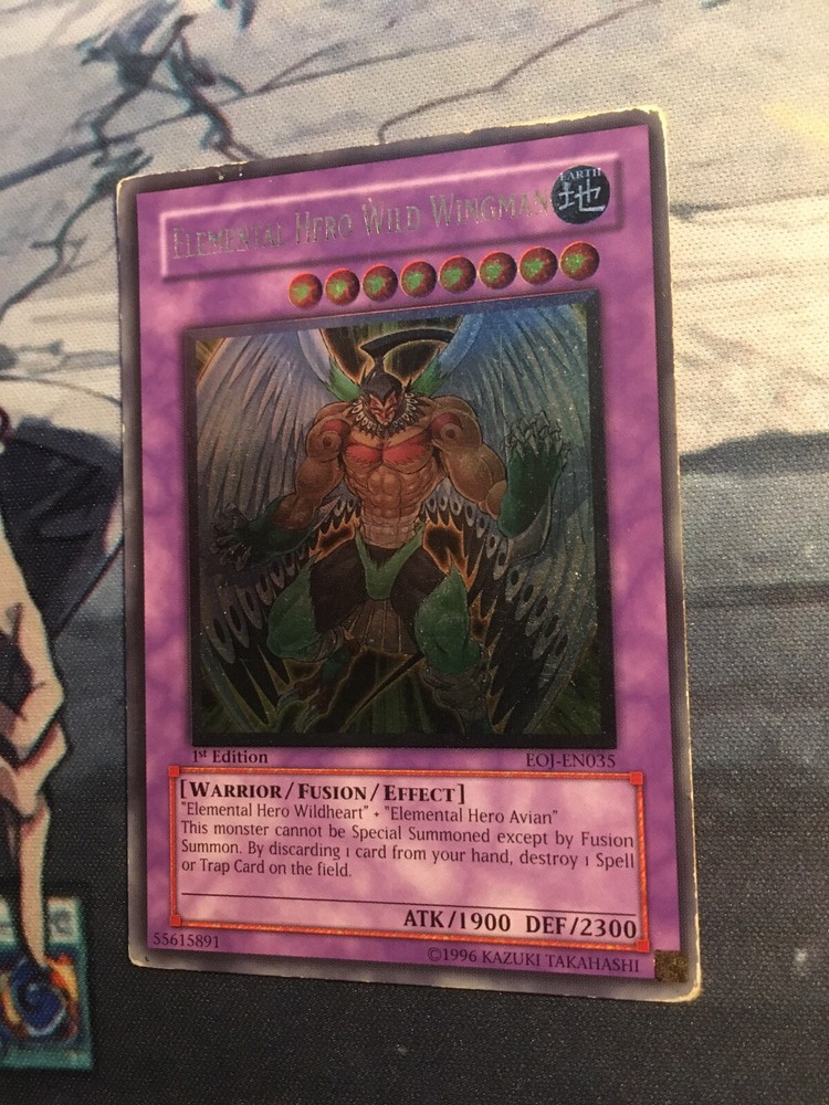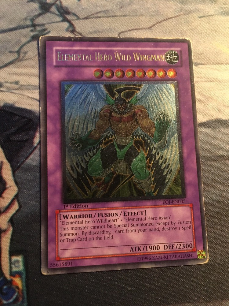 Elemental Hero Wild Wingman EOJ-EN035 1st Ed Ultimate Rare Yugioh Card Heavily Played, obvious edge wear visible also back with light scratches. Free shipping with tracking. Card(s) are place in sleeve, with top loader in a bubble mailer. Ship only within continental United States. No international shipping. No exceptions. Please see photos for condition and/or ask before buying. No returns accepted. Happy bidding and thank you!