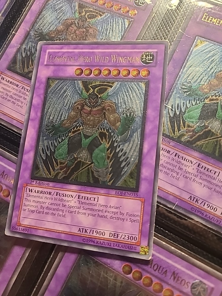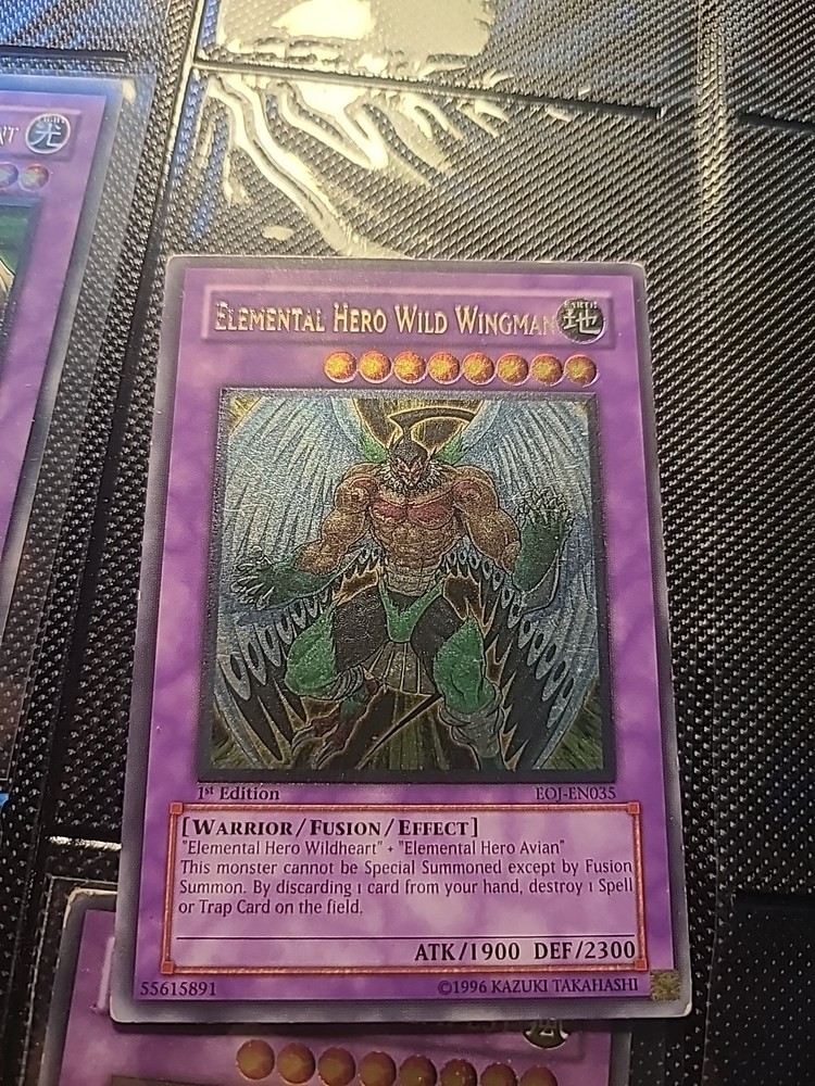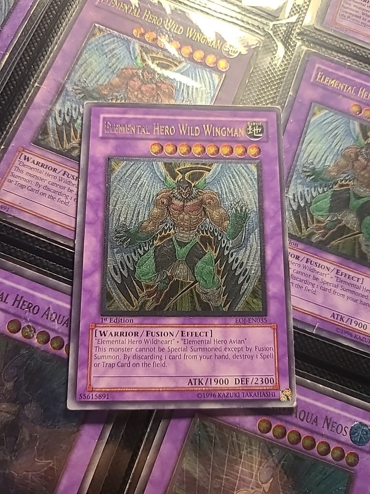 This Ultimate Rare Elemental Hero Wild Wingman card from Yu-Gi-Oh!'s Enemy of Justice set is a must-have for serious collectors and players. With its 1st Edition status, this card is highly sought after and is sure to be a valuable addition to any collection. Its lightly played condition makes it a great choice for both players and collectors alike. Don't miss out on the chance to own this stunning card!