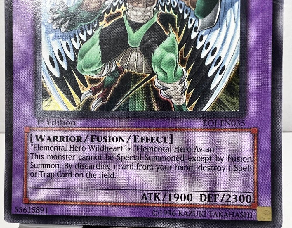 Elemental Hero Wild Wingman MP Ultimate 1st Ed EOJ-EN035 Yu-Gi-Oh Card. Crease on right hand side of card near art. Small crease on left near text. Sold as is. Please review photos of item for accurate description.