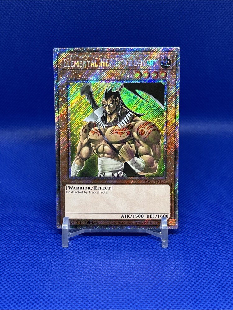 The product is a Yu-Gi-Oh! TCG card named Elemental HERO Wildheart. It is a Platinum Secret Rare card manufactured by Konami, featuring a Holo finish. This card is a 1st Edition and has the card numbe...