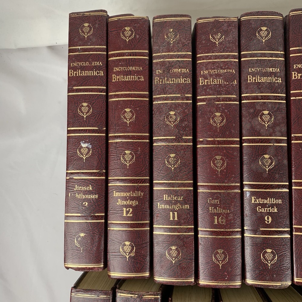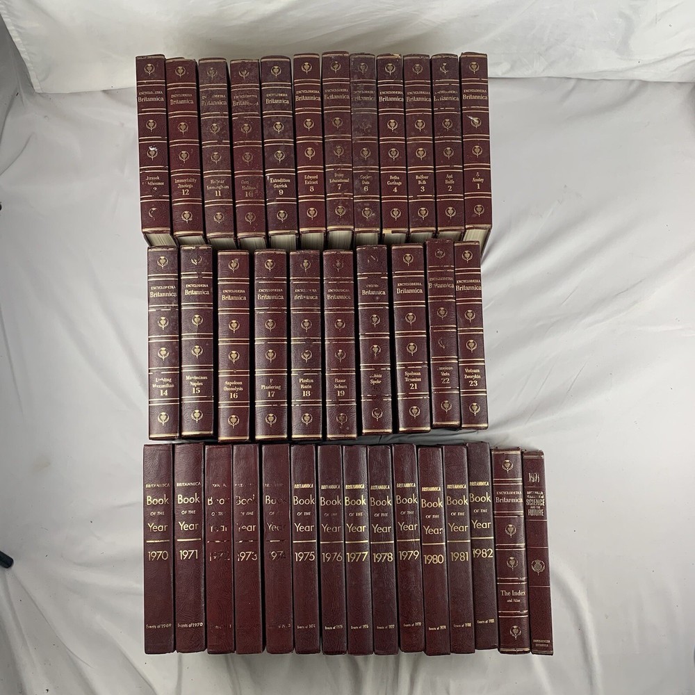 The set is complete however is just missing book #5 in the set. books have been sitting in storage and may need to be cleaned however they are in overall good condition. aside from the 23 vol set (missing #5) there is also the books of the year from 1970-1982 as well as the index atlas. Believe there are 37 books total. The set might need to be sent in 2 different boxes because if it was sent in1 box it may be close to 100 pounds. Please look at all photos for a detailed inspection of the item. I put effort towards ensuring my items are always described honestly, so if there are any imperfections I try to disclose them in the photos. For relevant listings you can find the measurements in the photos, if you don’t see the measurement you need or to request more details/photos please don’t hesitate to message me directly! Please ask all questions prior to purchasing!! Items will be carefully packaged and shipped within 2 business days after payment is received. If immediate shipment is required please reach out upon purchase. Also, check out my store for other items like this one, I am constantly restocking with new items! Would love to do business with you, Thank you for your interest!