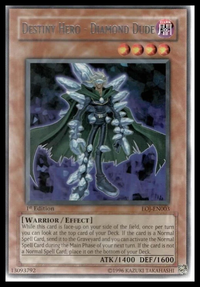 This is a nice example of a Enemy of Justice #EOJ-EN003 Destiny Hero Other important information about this card: Rare In 2006 Destiny Hero played for the . Please check out our other listings for more great cards.