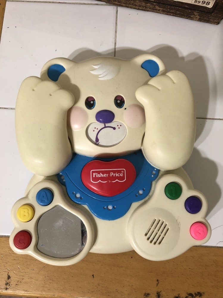 FISHER PRICE Peek N Speak BEAR Girl Boy VINTAGE 1997 #71147 Toy Sound WORKING. In good condition. Only noticed one discolored spot. Other than that I didn’t notice any bad issues. Color looks good. Please refer to all pictures and feel free to ask questions.