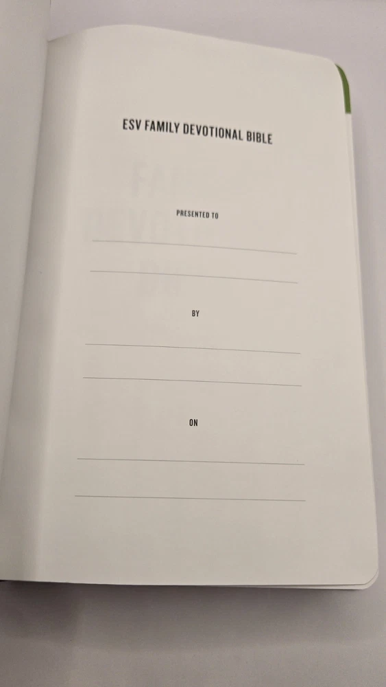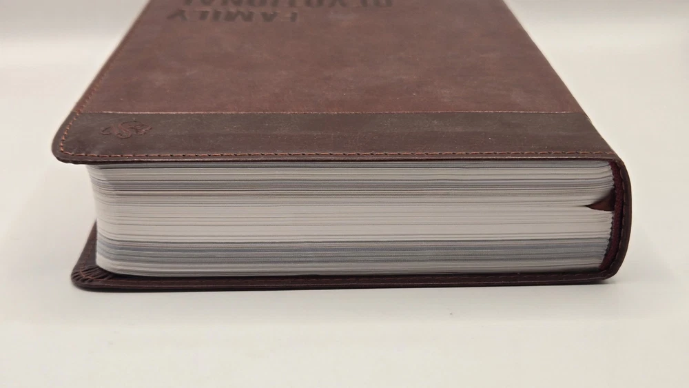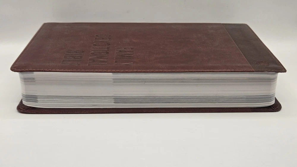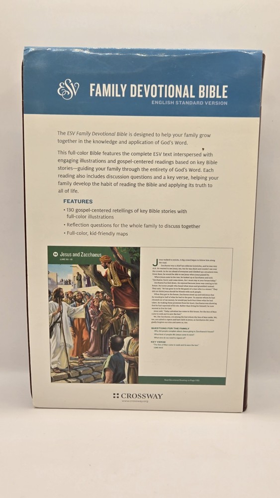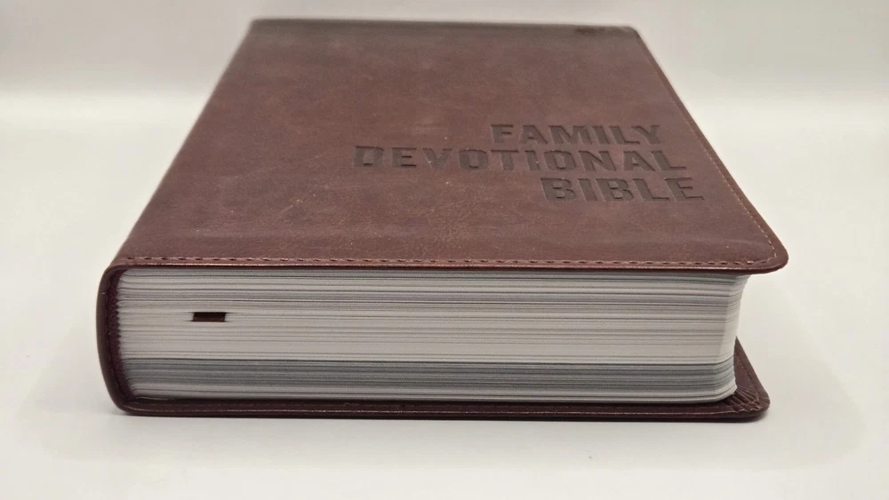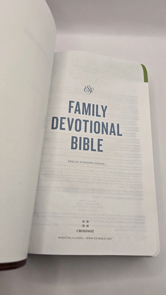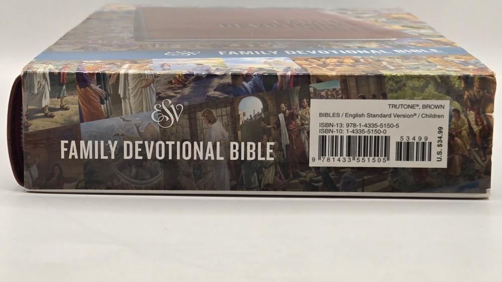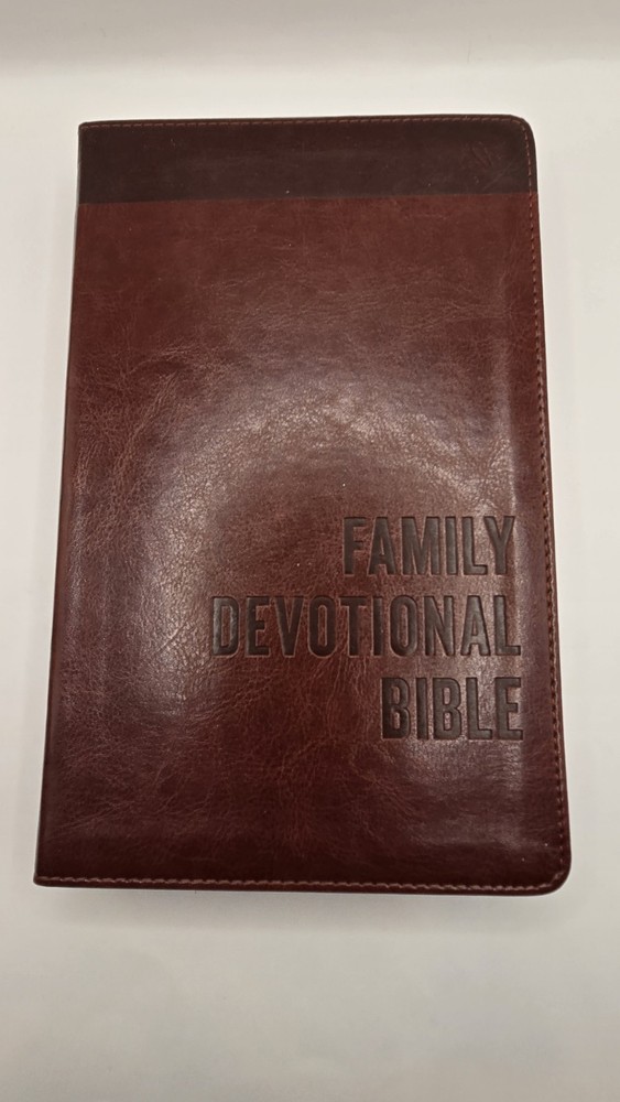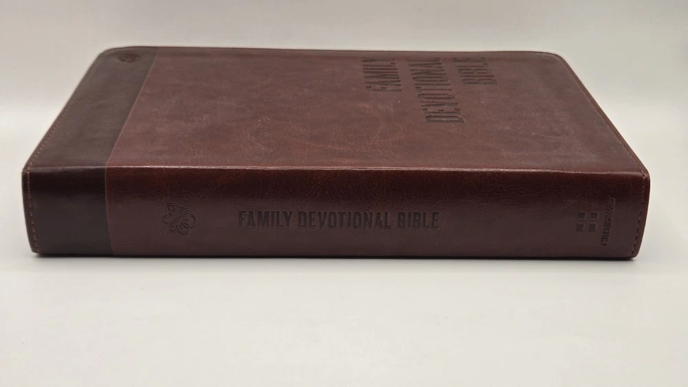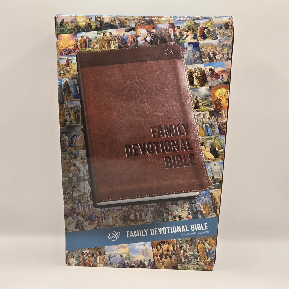 Family Devotional Bible ESV English Standard Trutone Faux Leather Brown 2015 New, unused in box. Brown, two tone, faux leather, ESV, illustrated, colored maps.