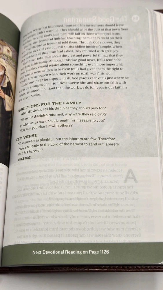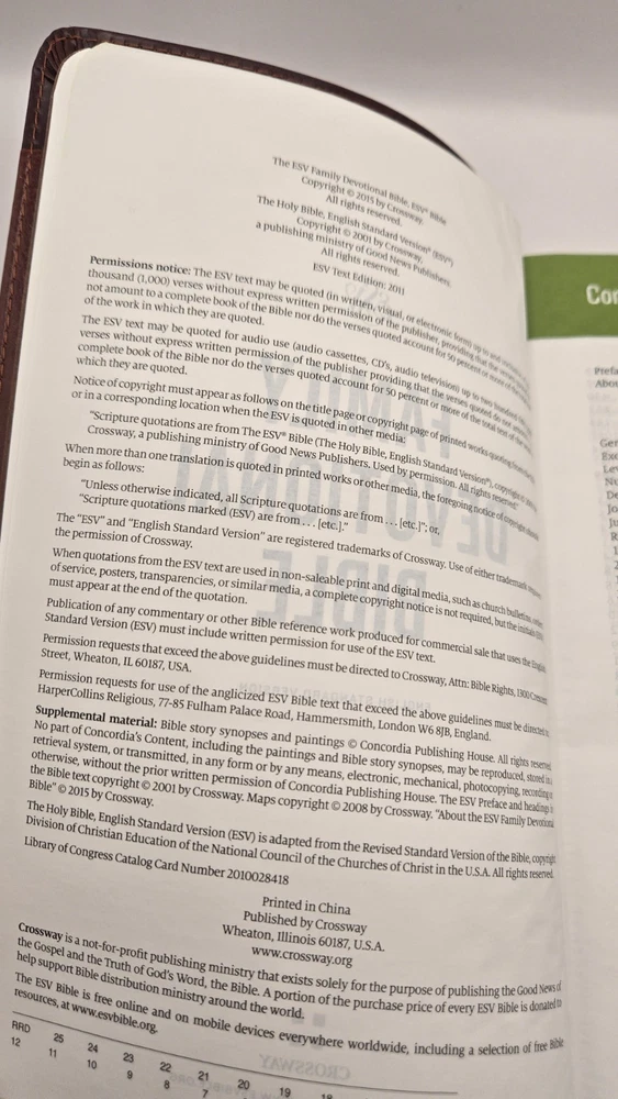 Family Devotional Bible ESV English Standard Trutone Faux Leather Brown 2015 New, unused in box. Brown, two tone, faux leather, ESV, illustrated, colored maps....