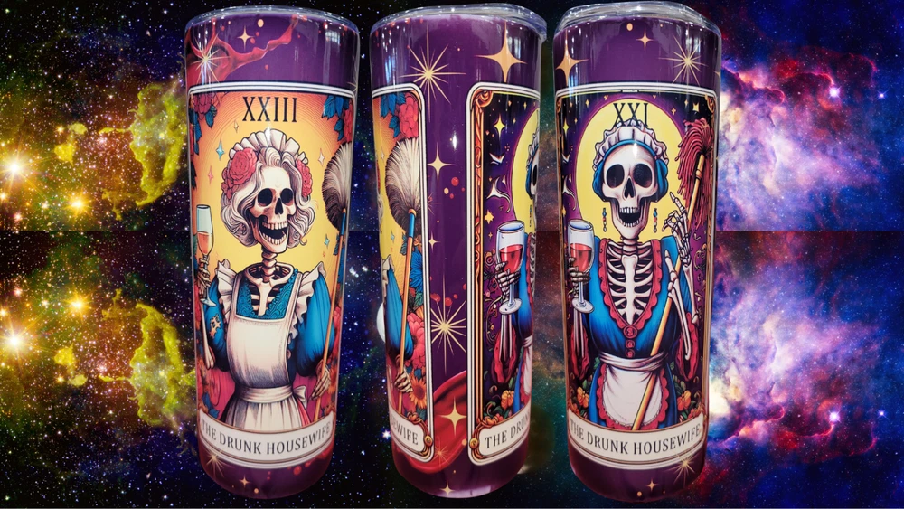 Embrace the mystical, the futuristic, and the hilariously dark with these unique stainless steel tumblers , adorned with original designs inspired by fantasy, sci-fi, and dark humor tarot imagery ! Whether you’re channeling the magic of Harry Potter, exploring the depths of Legend, or laughing at the absurd truths of modern life, these tumblers add a stylish edge to your everyday routine. Features: Double-Walled Insulation : Keeps drinks hot or cold for hours, perfect for spell-casting or intergalactic travel. Premium Stainless Steel Construction : Durable, sleek, and ready for all your adventures. Hard Plastic Lid & Straw Included : Spill-resistant design for sipping on the go. Two Sizes Available : Choose from 20oz or 30oz to fit your hydration needs. Designs That Speak to Your Inner Mystic or Sci-Fi Fanatic: Discover artwork inspired by iconic tales and humorous twists: Edward Scissorhands : A touch of gothic whimsy with every sip. Terminator : Stay cool, even if you’re in a post-apocalyptic chase. Predator : The ultimate companion for any jungle or office battle. Harry Potter : Add a little Hogwarts magic to your day. Legend : Relive the fantastical journey of light versus darkness. Labyrinth : Get lost in the magic of this beloved classic. Dark Humor Tarot Designs Include: The Cat Lady : Celebrate the quirky chaos of feline adoration. The Audacity : Perfect for those moments when you just can’t even. Not Enough Sage for This Ish : Because some situations are beyond spiritual cleansing! Why Choose These Tumblers? Unique & Collectible : Each design captures a beloved fandom or cheeky humor in a stylish way. Great Gift Idea : Perfect for fans of fantasy, sci-fi, and those who appreciate a little dark humor. Functional & Fashionable : Ideal for coffee, tea, water, or your beverage of choice. Step into a world where magic, sci-fi, and humor collide—all while keeping your drink perfectly temperature-controlled. 📦 Limited designs available—order now to own these captivating and laugh-out-loud tumblers before they vanish into the ether! 🌌🔮 FREE Personalization available upon request!