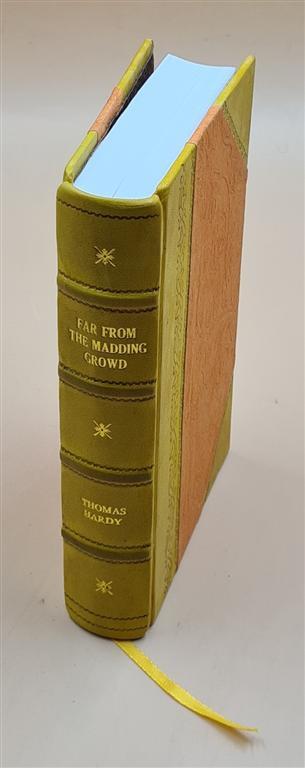 About the Book: Complete Title: Far from the madding crowd. With a map of Wessex. 1909 [Leather Bound] Author: Hardy, Thomas, Edition: Reprinted by Gyan Books in 2022 with the help of original edition published long back [1909] . Language: English No. Of Pages: 493 Binding: HALF LEATHER binding features a leather spine and corners with the remaining cover in Raxine or Marble Paper. CHOOSE ANY LEATHER COLOR OF YOUR CHOICE WITHOUT ANY EXTRA CHARGES JUST CLICK ON IMAGES FOR OPTIONAL COLORS AND INFORM US YOUR CHOICE THROUGH MAIL WITH COLOR CODE. Customization Options Available Upon Request We provide 'Extra customization*' on request with additional charges. Please note that customization charges are applied in addition to the listed item (Book) price. Customization Extra Charges Sample Image FULL LEATHER BOUND WITH GILDED EDGES (ANY COLOR) USD 35 MULTI-COLOR LABELS (Spine) USD 12 PERSONALIZED IMAGE EMBOSSING ON THE FRONT COVER USD 40 FOLIO EDITION (12x18.5 inches) BIGGER SIZE Six times of the given price Points to note before booking order: SPECIAL DISCOUNT FOR BULK ORDERS PLEASE CONTACT US. UNIQUE LEATHER-BOUND Edition on Spine and Corners along with Golden Leaf Printing on Round Spine. This book is: Printed in Black & White (If a color edition is available you may request it by mail for a nominal charge.) Sewed binding for longer life Printed on high quality Natural Shade Acid Free Paper Professionally processed without changing its content Genuine Leather is being used for Binding Handcrafted Golden Leaf Printing. Round Spine Handmade Marble paper use for end paper Raise bands Bookmark Ribbon As these are old books each page is processed manually to make them readable. But in case some pages are blur or missing or have black spots the same are re-printed as it is to keep the authenticity of the book. In case of multi volume sets please note that the above listing is for a single volume only. (To order multiple volumes please contact us separately). We request you to understand that these leather-bound books are work of art and hence require time to go through different process to be the masterpieces that they are. We usually take 20 business days as handling time to dispatch shipment. We consider special request for a special occasion. Craftsman based in India prepared this book and shipped from different stock locations around the Globe. PRODUCT DISCLAIMER: Please be aware that because leather is a natural material slight discoloration or change in texture may be visible. ABOUT US GYAN BOOKS INTRODUCING A REMARKABLE LEATHER-BOUND EDITION, METICULOUSLY CRAFTED BY THE ESTEEMED INSTITUTION: RARE BIBLIO A UNIQUE LEATHER-BOUND BOOK FOR ELITE READERS/COLLECTORS OF OLD RARE AND BESTSELLING BOOKS. An ORIGINAL LEATHER is being used for Binding this Book on SPINE AND CORNERS along with GOLDEN LEAF PRINTING {Half Leather}. We deal into reprinting of the masterpieces crafted by authors around the world. We are proud to say that we have a collection of over 25 million books and our collection includes books that are as old as 200 years and hence are considered as RARE BOOKS. We are pioneer in this field having experience of 40 years. We also undertake printing and Leather Binding jobs of other books. Thesis printing and Leather Binding is one of our important services. Many publishers and authors approach us for their books to bind in our unique leather binding format for their special customers. Our craftsmen are active in this job since generations. Restoration of old books is our expertise. We are known by our Customization options. We have many leather color options in our bucket. The whole process is done manually so that it gives you the same feeling of old book.
