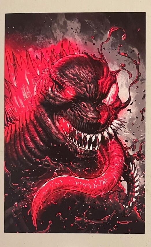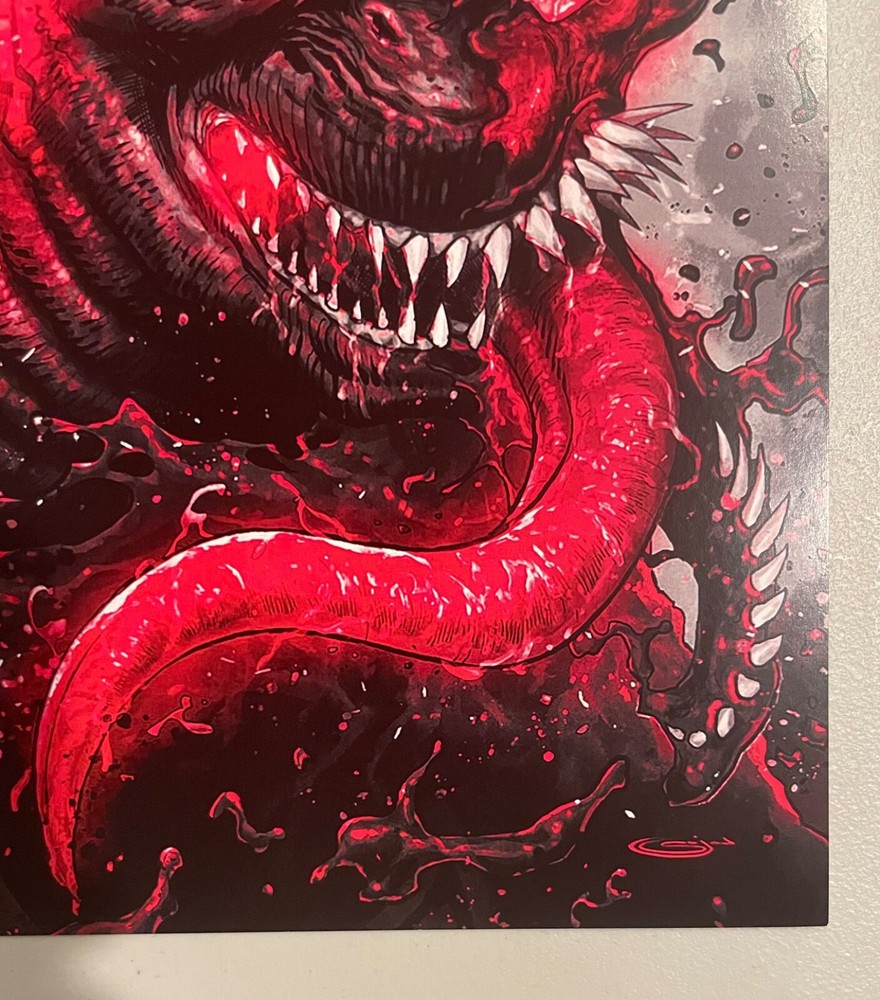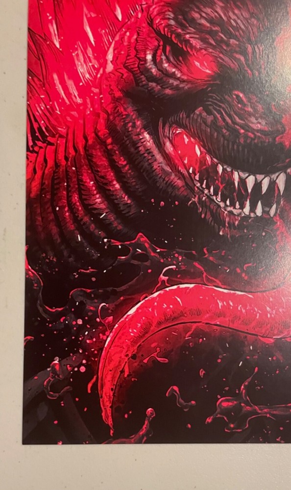 Absolutely stunning artwork! The vibrant blood red color makes this Godzilla piece pop. Arrived in perfect condition and looks even better in person. A must-have for any collector!
