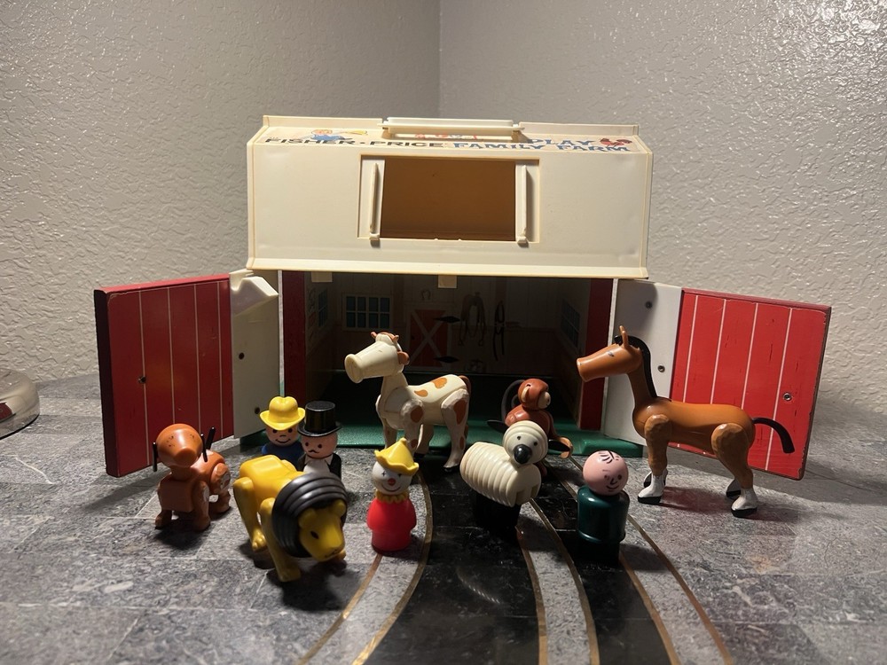 Fisher Price Vintage 1967 Little People Play Family Farm Barn Set MOO Sound...