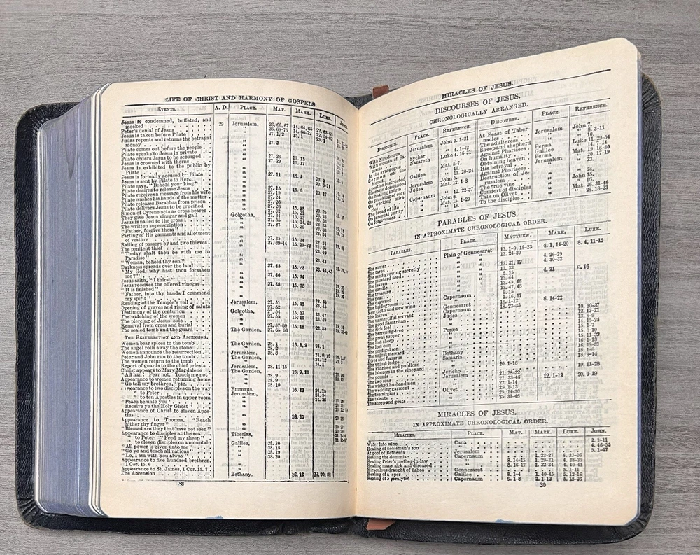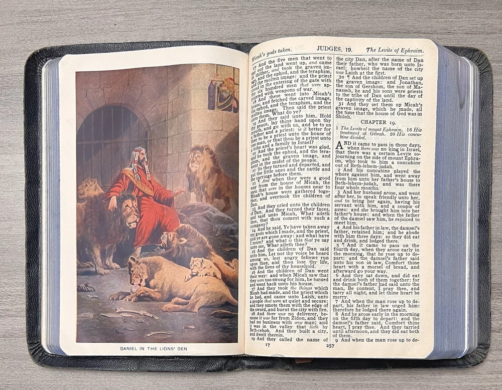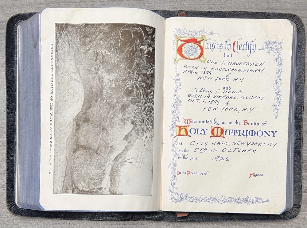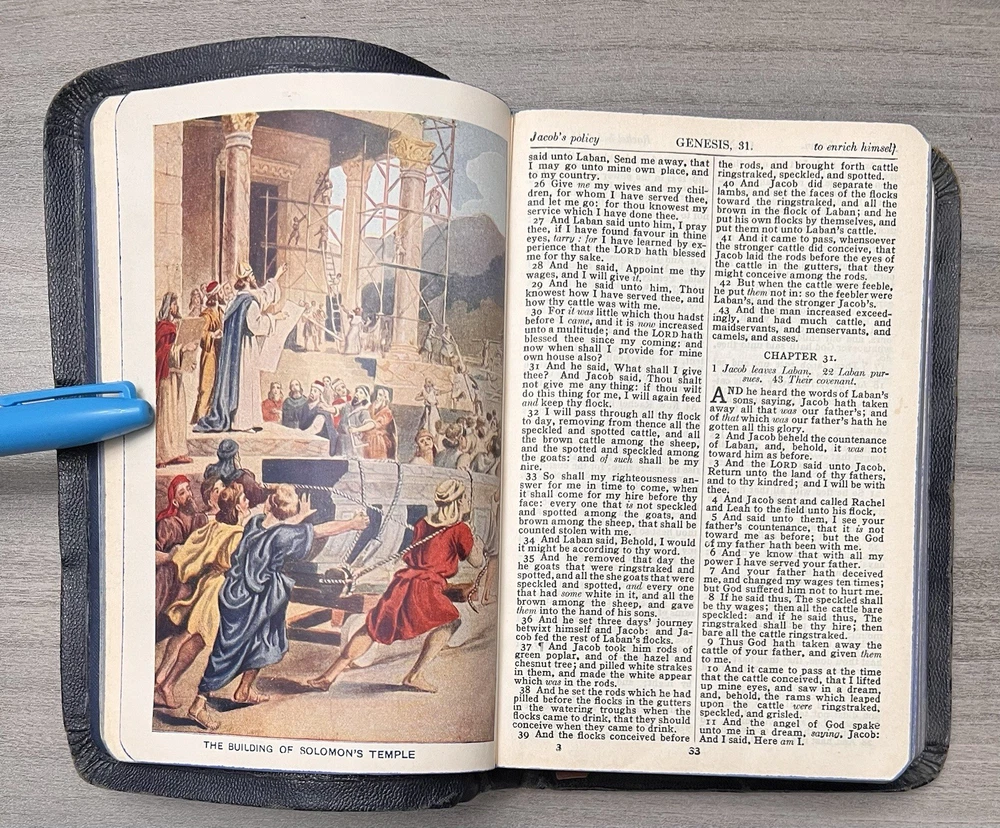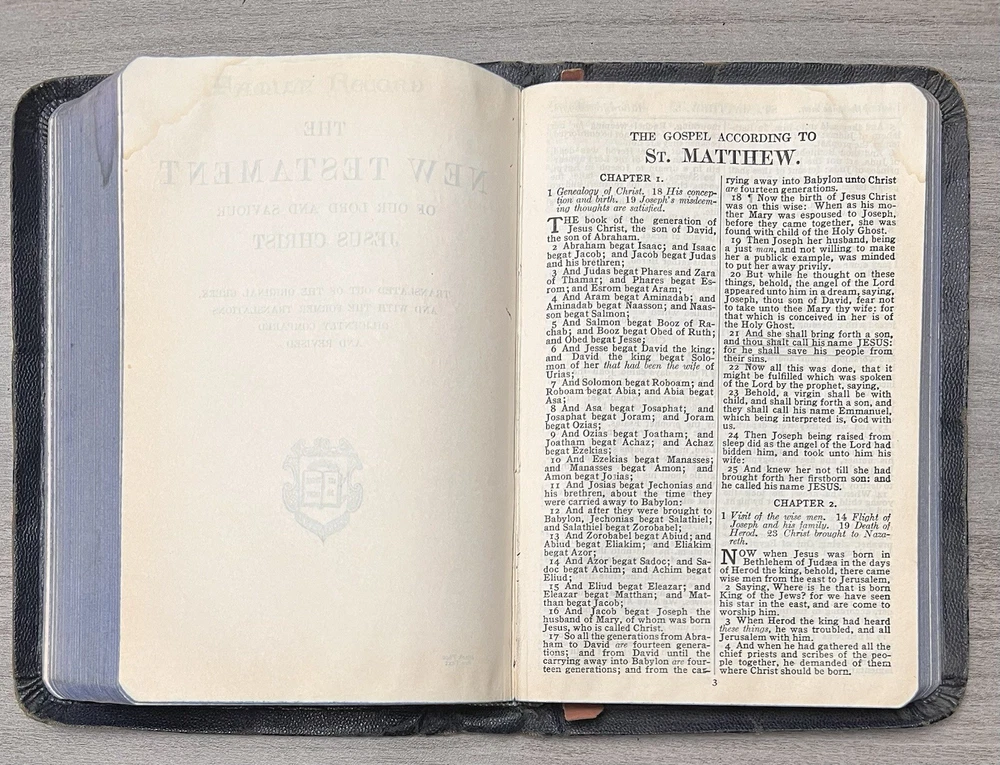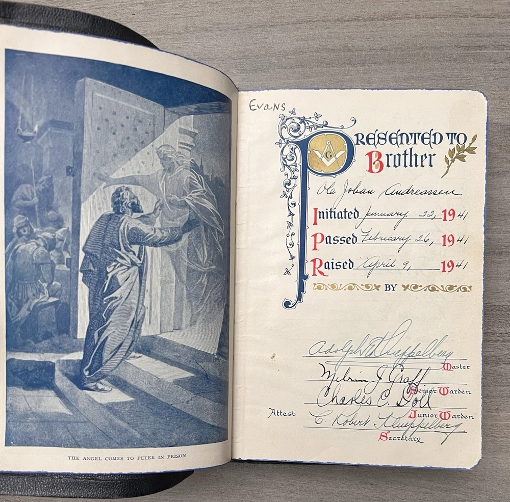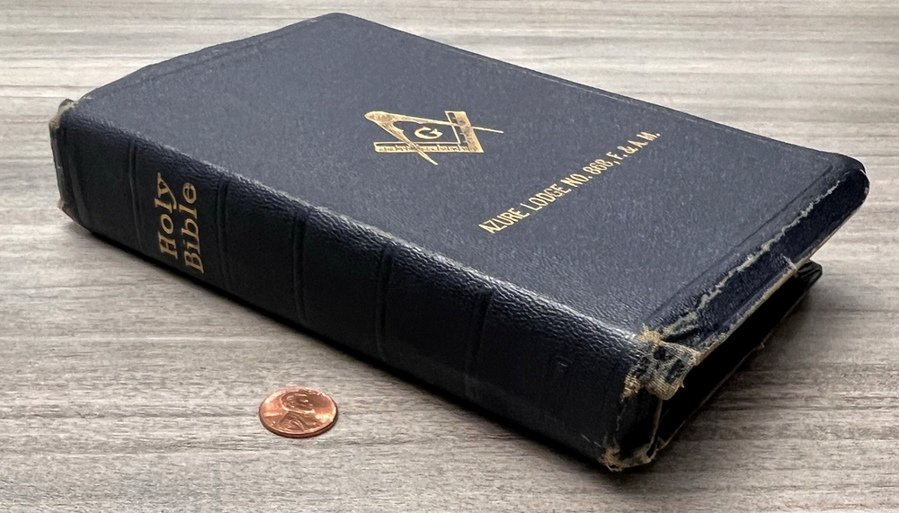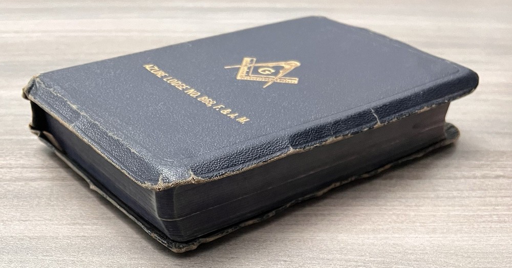 This Bible is a true treasure for collectors and Freemasons alike! The navy leather cover has aged beautifully, and the Azure Lodge stamp adds a unique historical touch. Despite some expected wear and minor stains, the text remains clean and crisp with no markings. The sewn binding is still solid, making it durable for years to come. A rare find with incredible character—perfect for anyone who appreciates vintage religious artifacts with Masonic significance. The family records and signatures add a personal, sentimental value. Highly recommended for its rarity and condition!