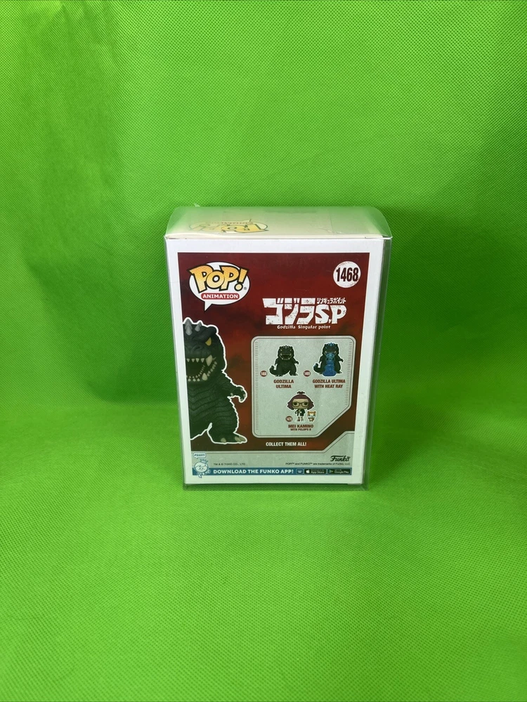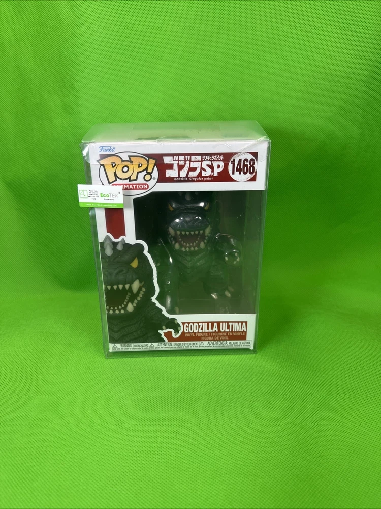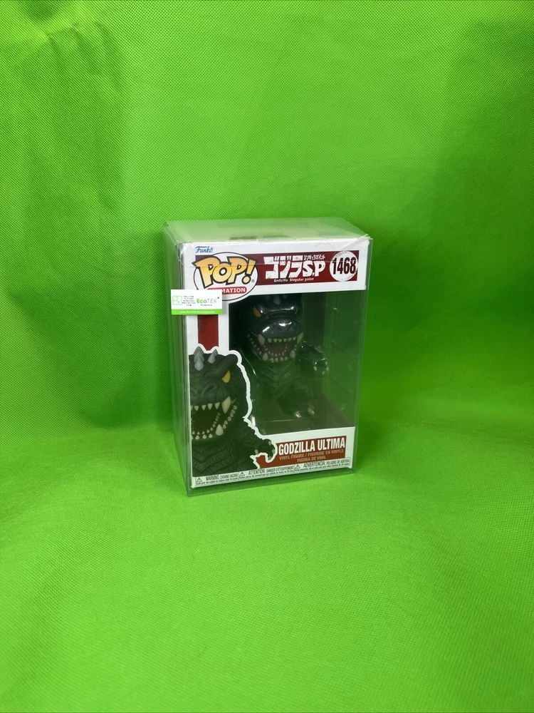 Introducing the Funko Pop Netflix Godzilla Singular Point - Godzilla Ultima Figure w/ Protector. This highly sought-after collectible is a must-have for fans of the Godzilla franchise. The figure stands at 4 inches tall and comes in its original packaging, unopened with a protector. This Pop! Vinyl figure features Godzilla in its ultimate form from the popular Netflix series. It is a Grade 100 vinyl figure with a unique box number of 1468. The item is perfect for collectors and fans of mixed martial arts and movies. Don't miss out on this exclusive Funko Pop! Vinyl figure.