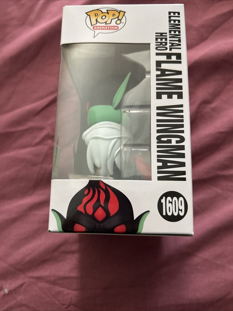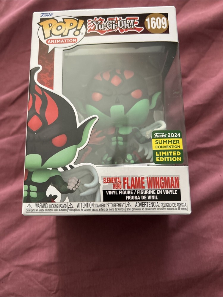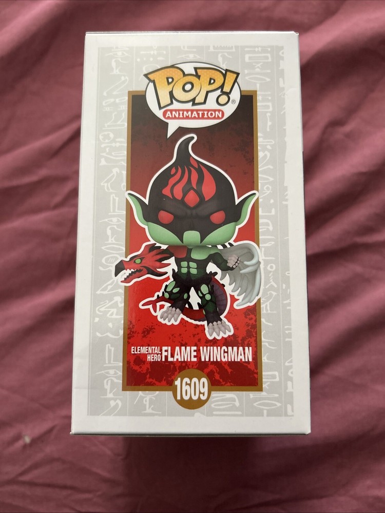 The Funko Pop! Vinyl figure features Elemental Hero Flame Wingman from the Yu-Gi-Oh! series. This exclusive figure was released at the San Diego Comic Con and Hot Topic, part of the Heroes collection. It is made of vinyl material, showcasing detailed design and vibrant colors, representing the popular anime and manga theme from Yu-Gi-Oh! The box number is 1609, and it is a must-have collector's item for fans of the franchise.