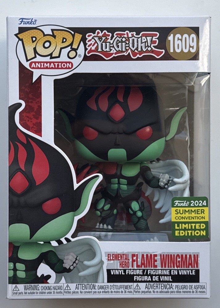 This Funko Pop vinyl figure is a must-have for any Yu-Gi-Oh! fan. The exclusive Elemental Hero Flame Wingman SDCC shared design, with box number 1609, is sure to impress collectors. The Pop! Vinyl figure is made from high-quality vinyl material and comes with a protector to keep it safe from any damage. The figure features the iconic character from the popular TV/streaming show, Yu-Gi-Oh!, and is part of the Heroes collection. With its detailed design and vibrant colors, this Funko Pop is a great addition to any collection. Don't miss your chance to own this rare and highly sought-after Pop! Vinyl figure.