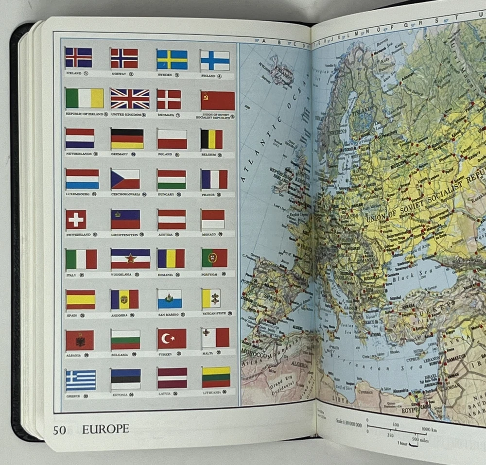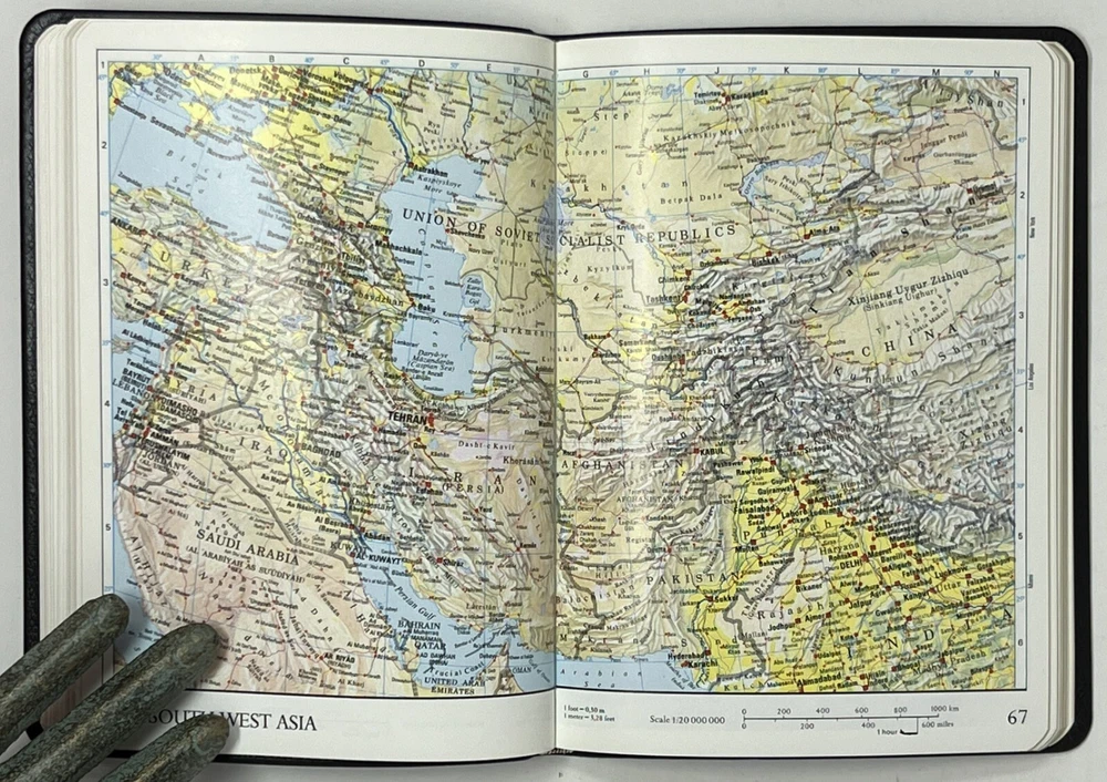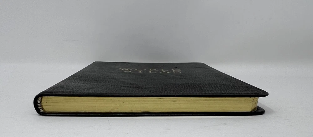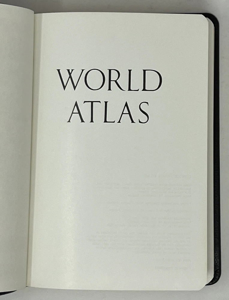 GEOGRAPHY: World Atlas by Neiman Marcus - 1991 Leather Softcover with Color Maps Please see pictures to determine the exact condition of this book. Please send a message if you have any questions. We ship promptly.