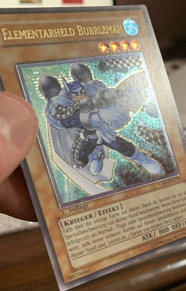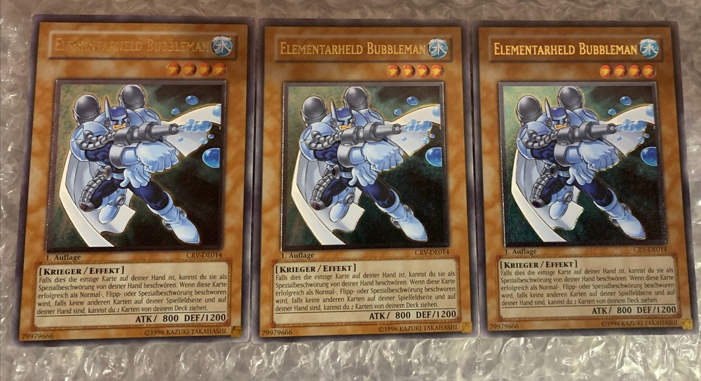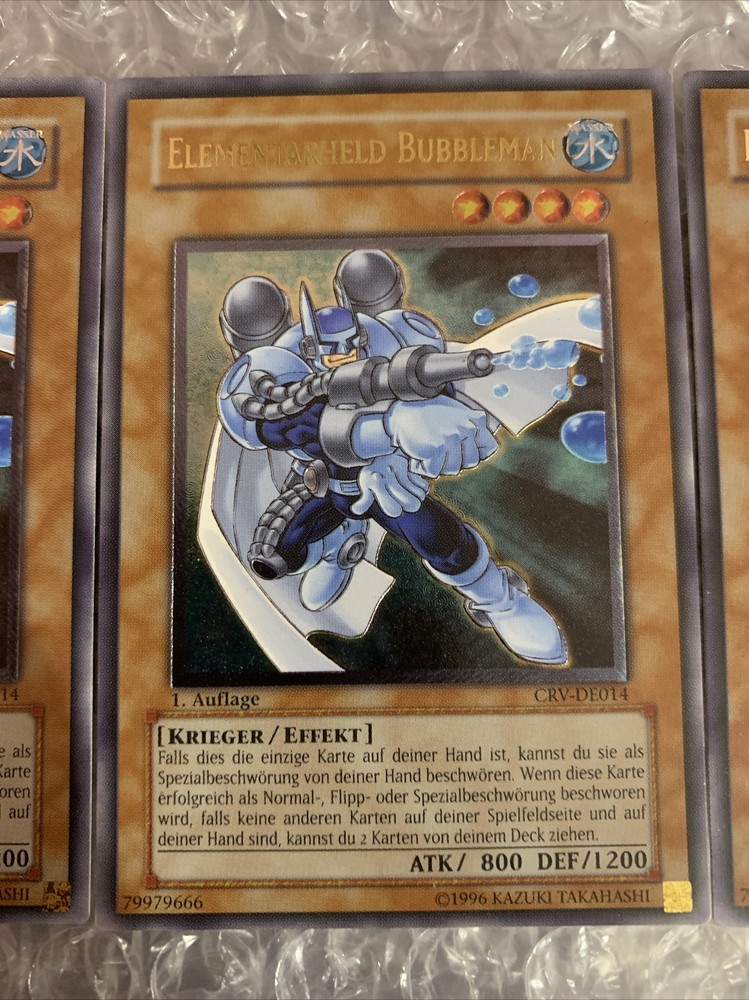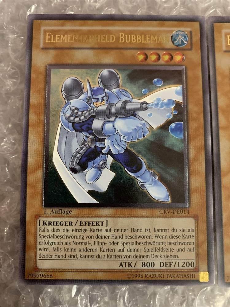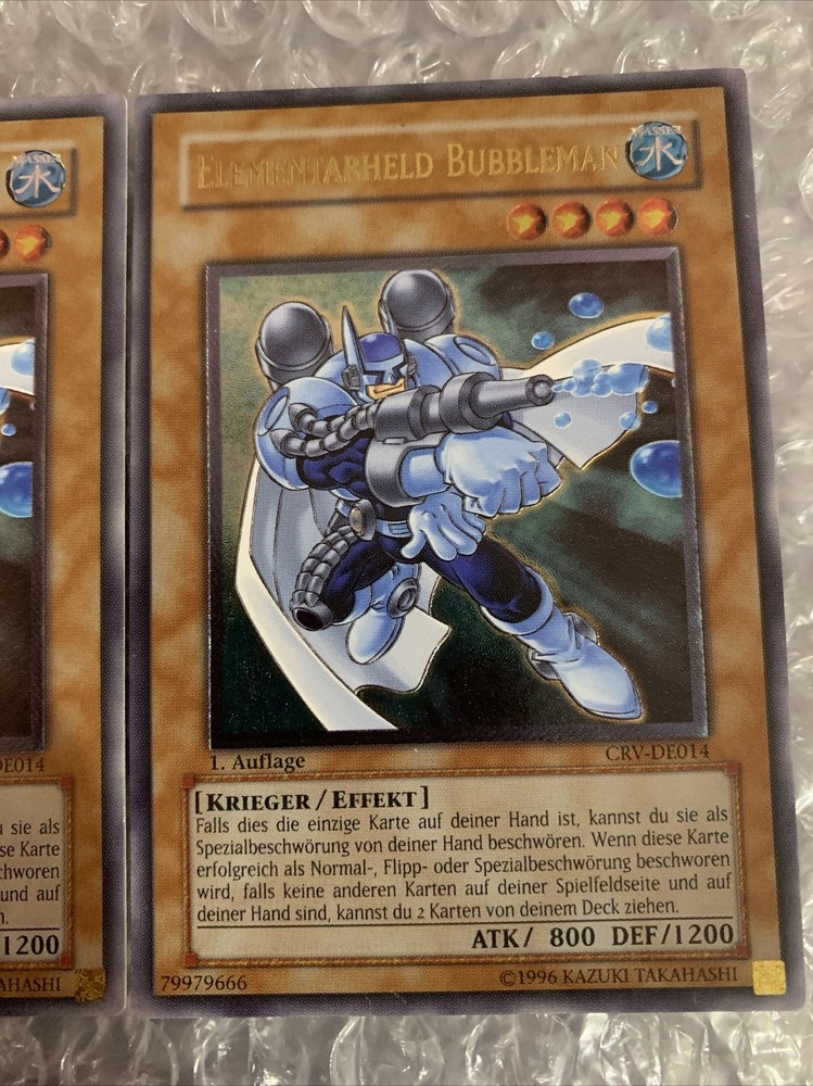 GERMAN PLAYSET Elemental Hero Bubbleman Ultimate Rare 1st Edition CRV-EN014 (CRV-DE014) - NM/VLP Has minor wear, dirt marks, etc, but in great shape for its age. Beautiful shine! Check last picture. Ask questions No returns after I ship Thank you