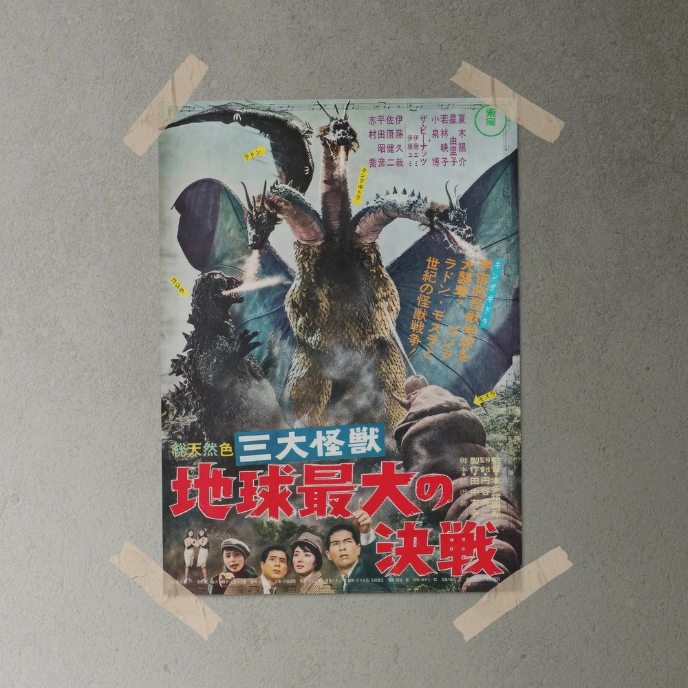 GHIDORAH 1964 Reprint Japanese Horror Sci-Fi Film Poster Watermark will be removed High Resolution, 300 DPI Premium Semi-Gloss Paper Unframed, comes shipped In Mailing Tube