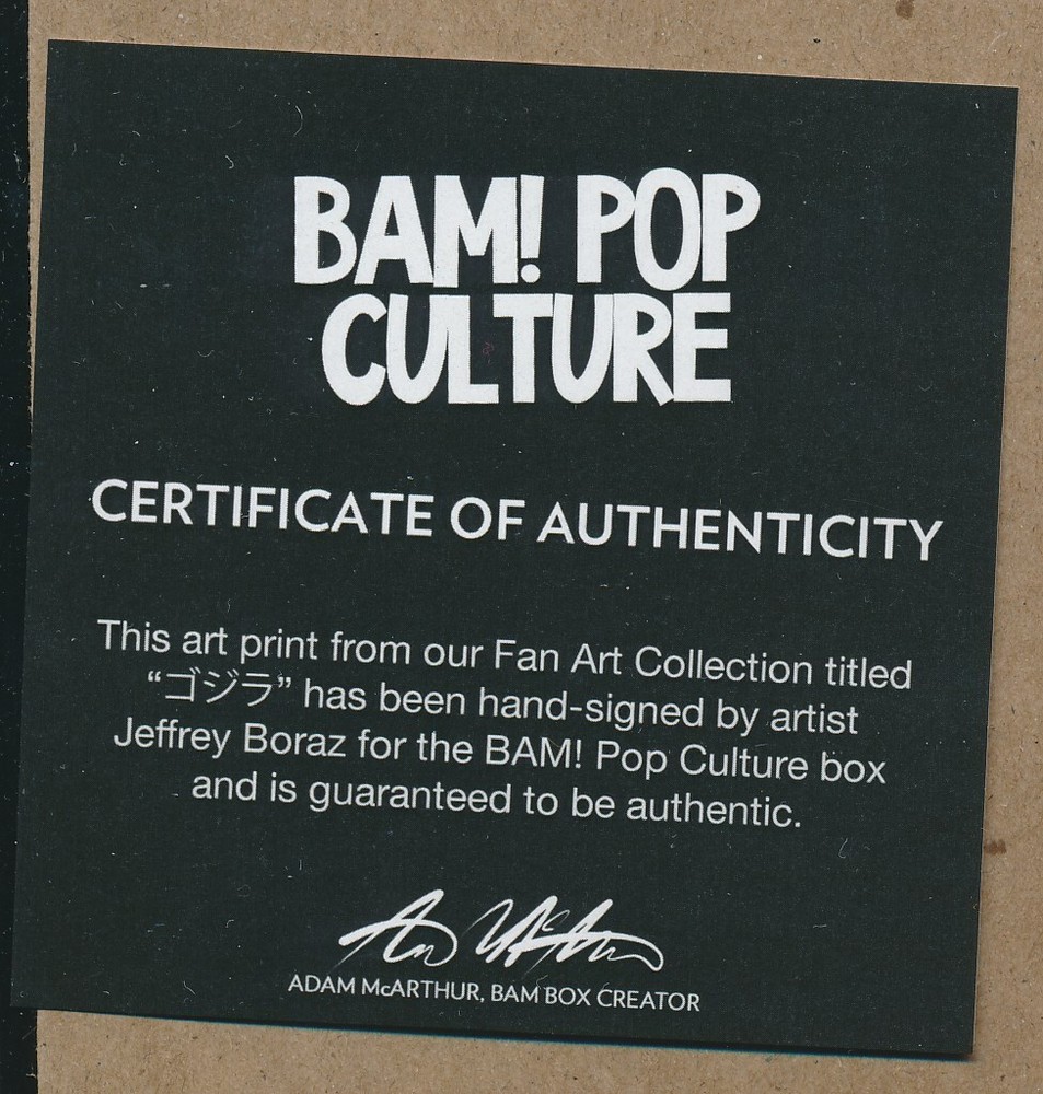 GODZILLA BAM BOX Exclusive ART PRINT 8x10 LE /3000 SIGNED JEFFREY BORAZ. The pictures are of the exact signed print you will receive. Shipping for this print is $4.00 within the United States. Additional items ship for free within the United States. If you are planning on bidding on more then one item please wait for a final invoice after all of the auctions you are interested in are done. Shipping Internationally is available. We use the eBay shipping calculator to generate the international shipping price. If you have any questions, please let me know.