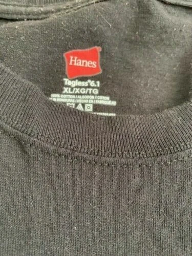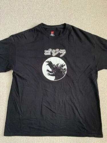 This item offered for sale is a terrific " GODZILLA " black T-Shirt made by Hanes. The graphics are awesome and it is one sided. The shirt is in great condition with some very light wear and a few tiny spots at bottom. It was purchased many years ago. SIZE IS XL . Pit to pit measures 22.5 inches. Top of (front) collar to bottom of shirt is 26 inches . ALL SALES ARE FINAL ON THIS SHIRT . Shipping for customers in the USA will be $8.00 which will include delivery confirmation. I only ship overseas with ebay global. I will ship within 24 hours of receiving payment. Thank you and please feel free to ask any questions.