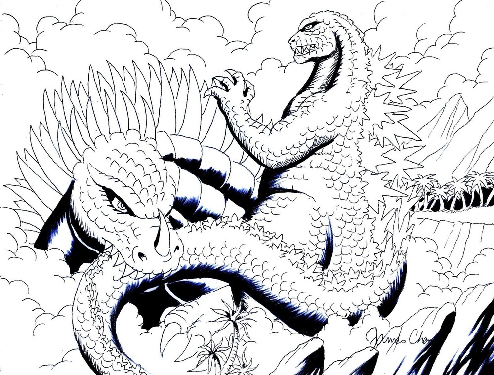 GODZILLA KAIJU BATTLE FINE ART ORIGINAL COMIC INK SKETCH