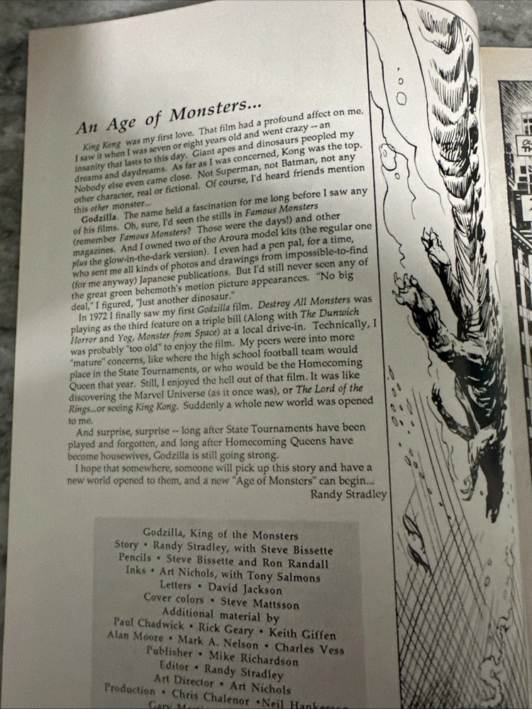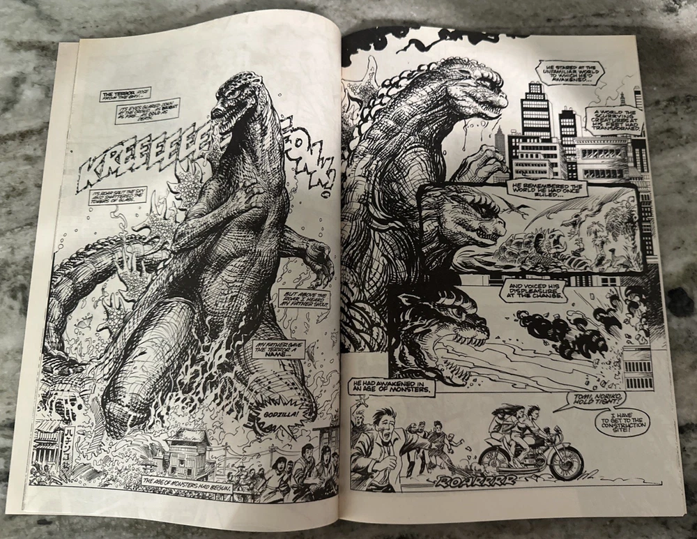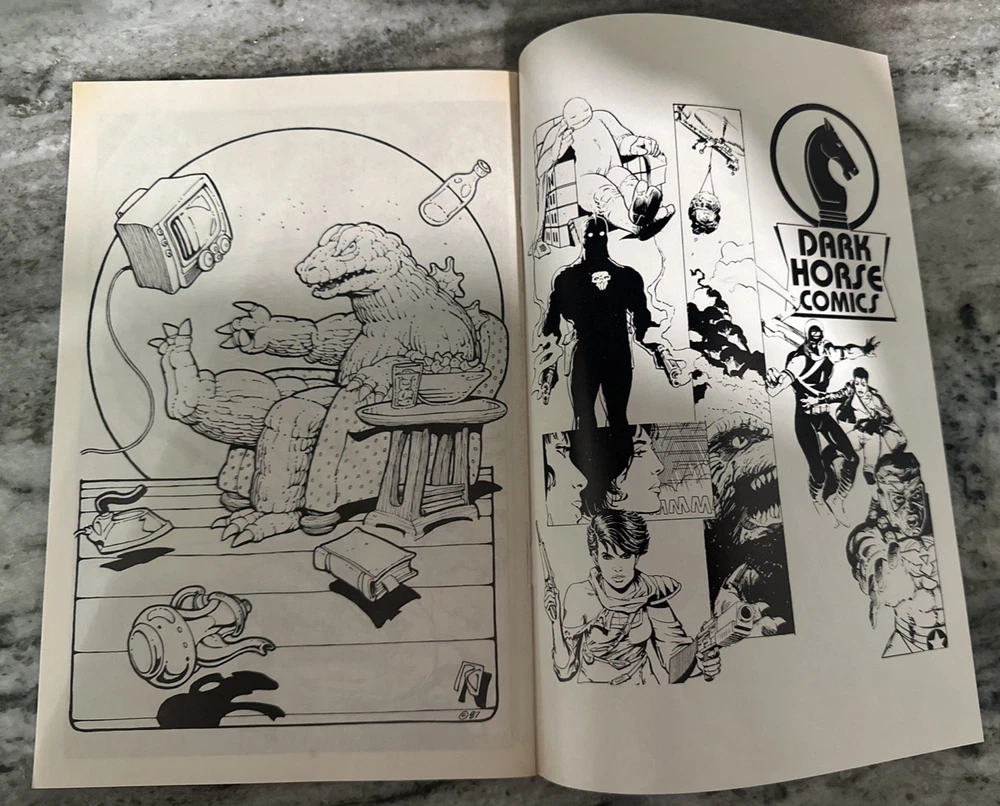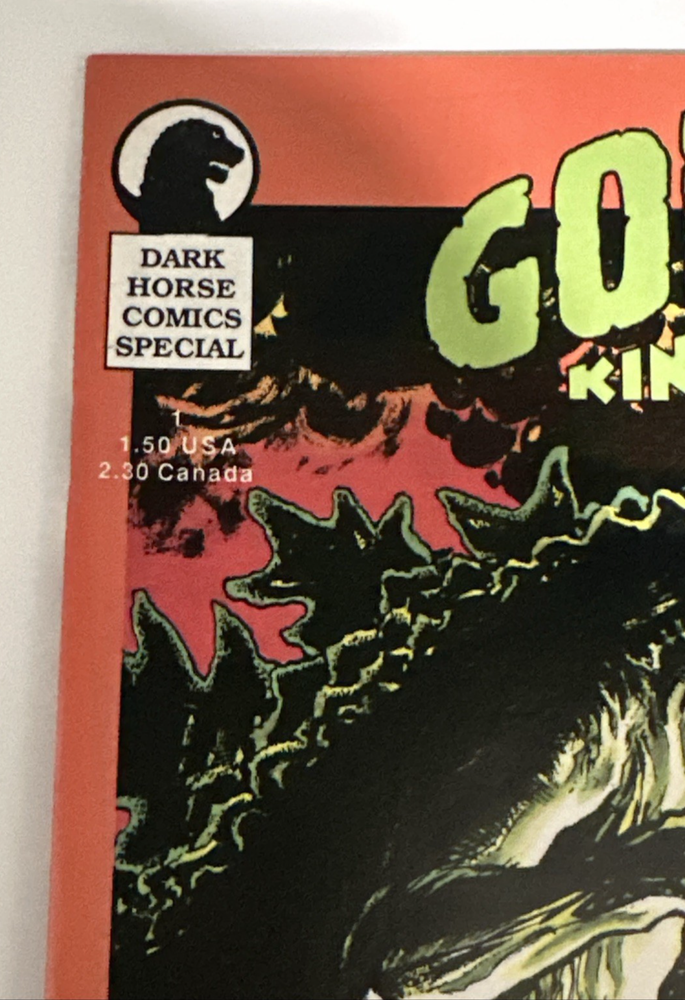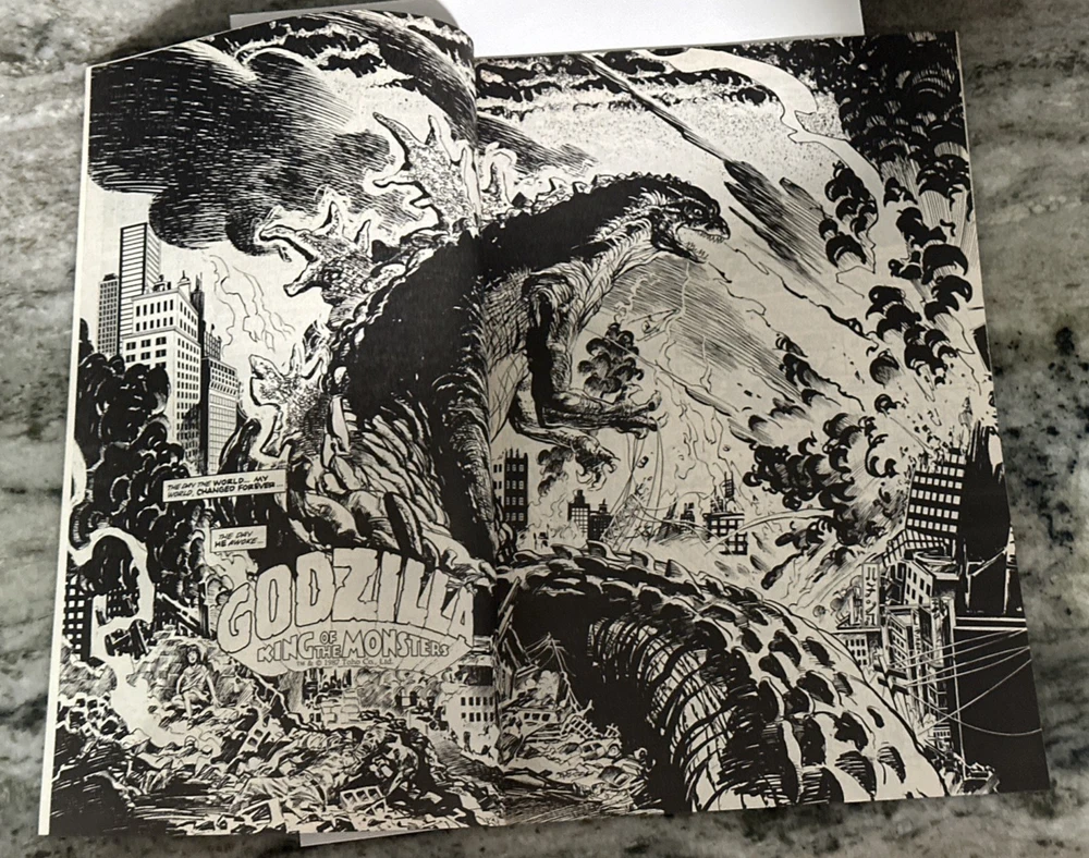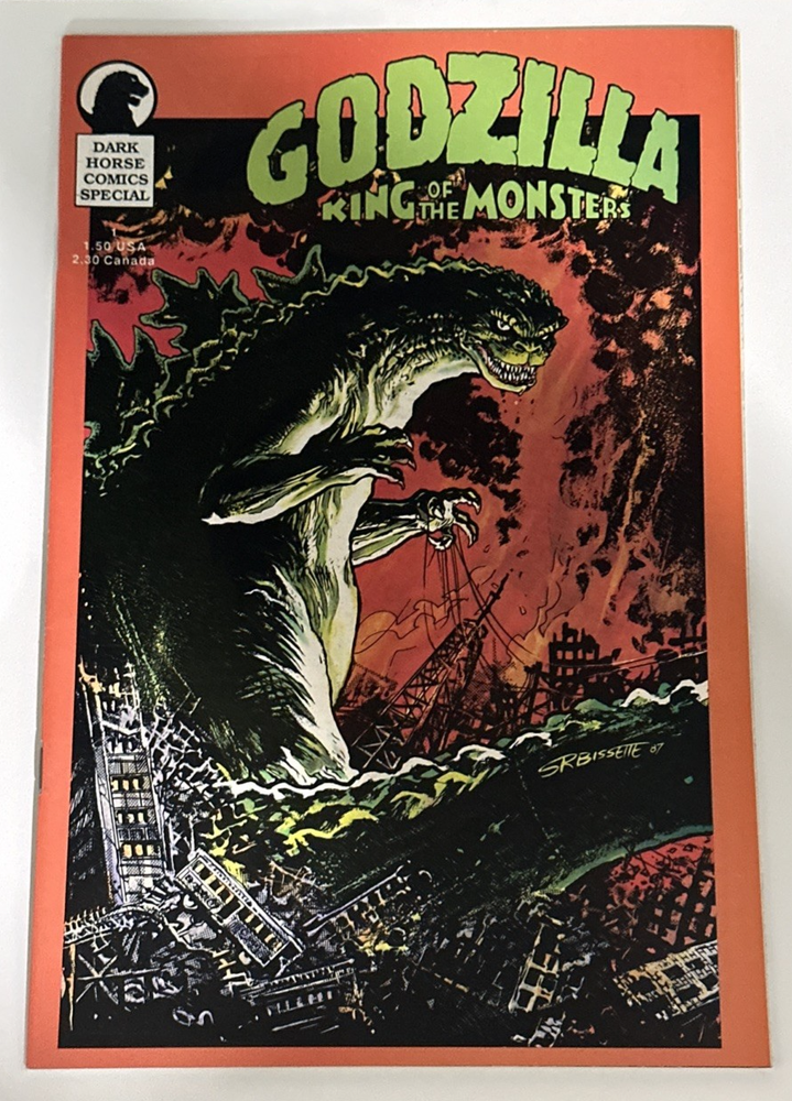 DARK HORSE CLASSICS: GODZILLA - KING OF THE MONSTERS #1 ORIGINAL BLACK AND WHITE PRINT! A NIGHTMARE RISES FROM THE SEA! A PREHISTORIC MONSTER UNLEASHES ON THE ATOM AGE !A NATION TREMBLES IN FEARA MIGHTY CITY LAID TO WASTE! 32 PAGES OF GODZILLAS FIRST APPEARANCE IN THE MODERN WORLD! A COLOR EDITION WAS LATER PUBLISHED IN 1998 STORE AND WILL SHIP IN A SOFT SLEEVE WITH A WHITE BACKING CARDBOARD WRITTEN BY RANDY STRADLY AND STEVE BISSETTE LOOK CLOSE AT ALL PICTURES AND ASK ANY QUESTIONS FROM A SMOKE AND PET FREE HOME