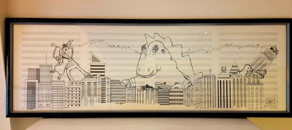 GODZILLA MEETS MADAMA BUTTERFLY vintage signed art print limited edition 144/250. Framed 14" x 41"...