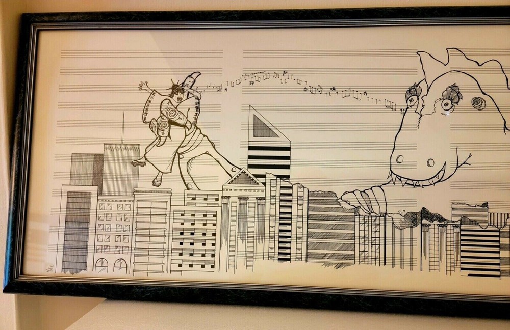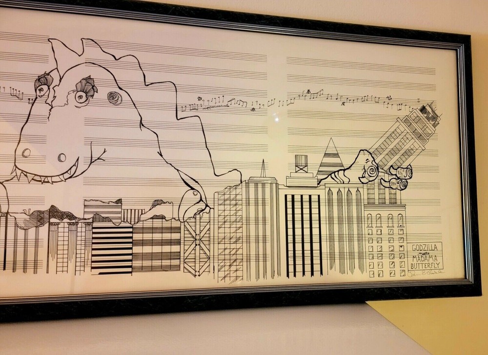 GODZILLA MEETS MADAMA BUTTERFLY vintage signed art print limited edition 144/250. Framed 14" x 41"