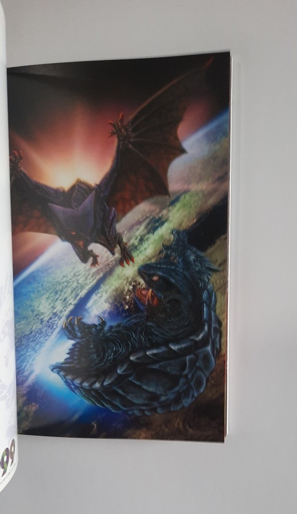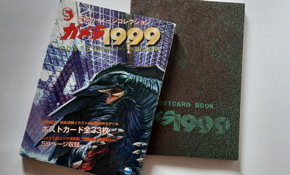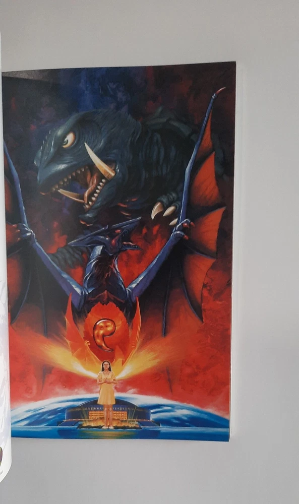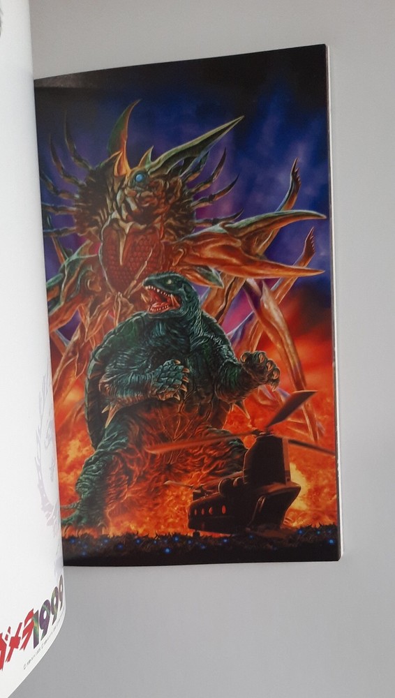 This rare GODZILLA Poster postcard art fan book . The book contains a collection of art postcards featuring the iconic monster, and is a must-have for any fan. This collector's item is perfect for anyone who loves Godzilla and wants to add a unique piece to their collection.