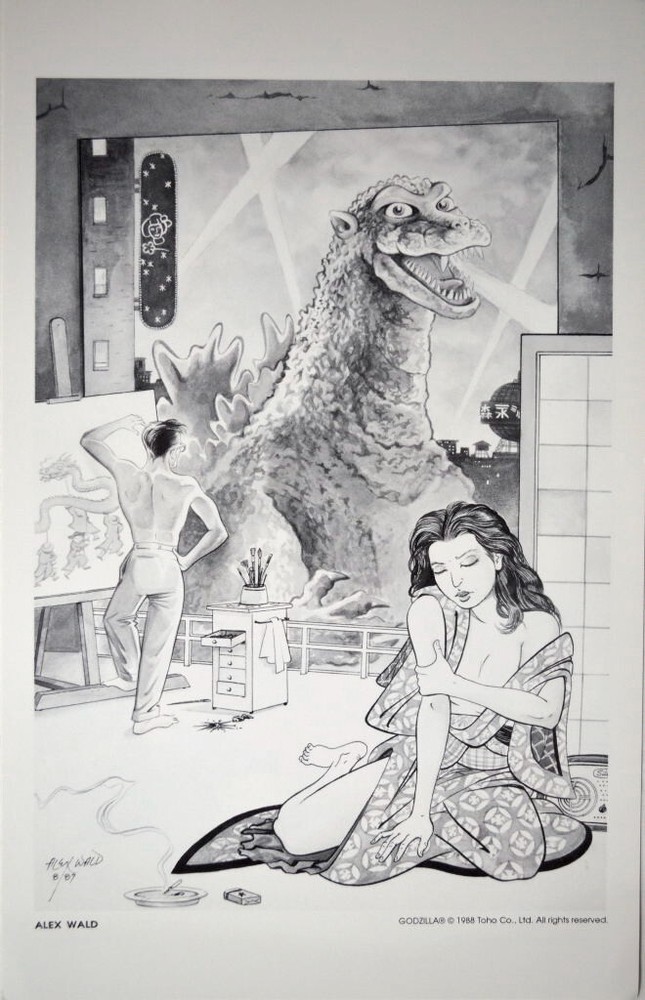 Offered here is an amazing high-quality GODZILLA print featuring the art of Alex Wald , published by Toho Co. Ltd in 1988. This is an original portfolio print and measures approx. 9 1/2" x 14 1/2" and is in excellent condition, see the photo. We also have the rest of this amazing set of prints listed in our ebay store, check out our other listings. Be sure to add me to your favorites list ! Check out my other items ! I ship worldwide and will combine shipping. Feel free to ask any questions, please do so before end of auction. Will ship worldwide. AR residents add 9% sales tax.