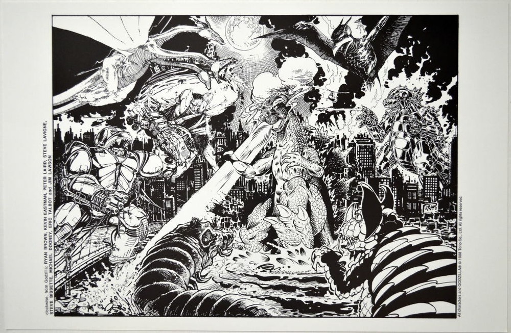 Offered here is an amazing high-quality GODZILLA print featuring the art of Kevin Eastman, Peter Laird Steve Bissette, Jim Lawson and others, published by Toho Co. Ltd in 1988. This is an original portfolio print and measures approx. 9 1/2" x 14 1/2" and is in excellent condition, see the photo. We also have the rest of this amazing set of prints listed in our ebay store, check out our other listings. Be sure to add me to your favorites list ! Check out my other items ! I ship worldwide and will combine shipping. Feel free to ask any questions, please do so before end of auction. Will ship worldwide. AR residents add 9% sales tax.
