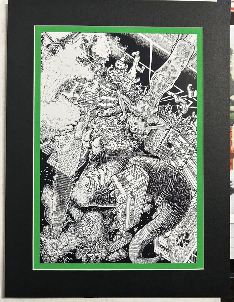 Offered here is an amazing high-quality GODZILLA print featuring the art of Alan Moore , published by Toho Co. Ltd in 1988. This is an original portfolio print and measures approx. 9 1/2" x 14 1/2". Professionally matted, ready to frame and is in excellent condition, see the photo. We also have the rest of this amazing set of prints listed in our ebay store, check out our other listings. Be sure to add me to your favorites list ! Check out my other items ! I ship worldwide and will combine shipping. Feel free to ask any questions, please do so before end of auction. Will ship worldwide. AR residents add 9% sales tax.
